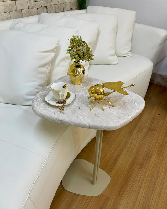 Linha Concha - Mesa Pérola - Mármore Travertino Romano ( Textura Natural )