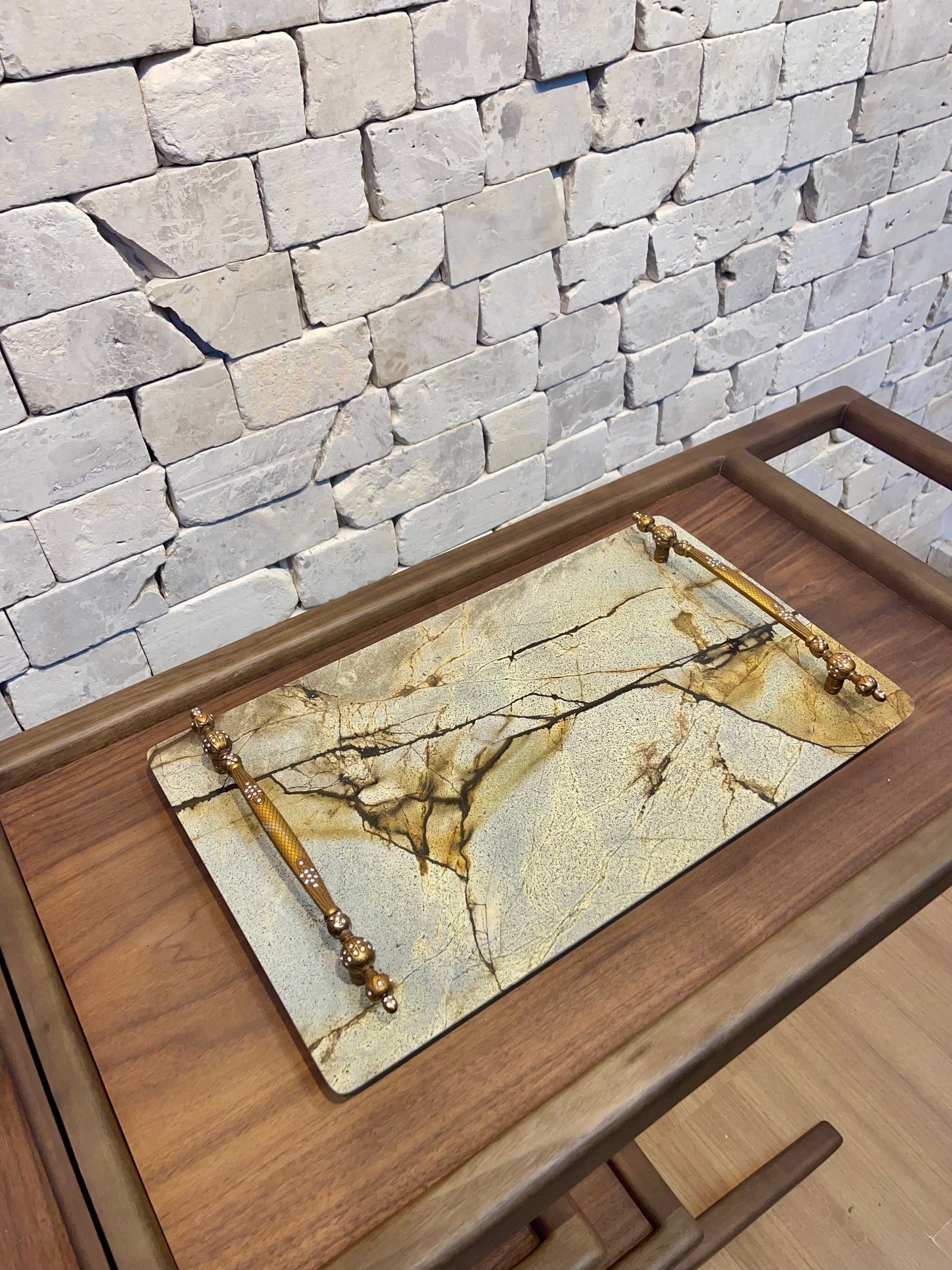 Bandeja - Mármore Blue Deep exótico- Com pegador colonial- 45x35 Cm - Peça Única