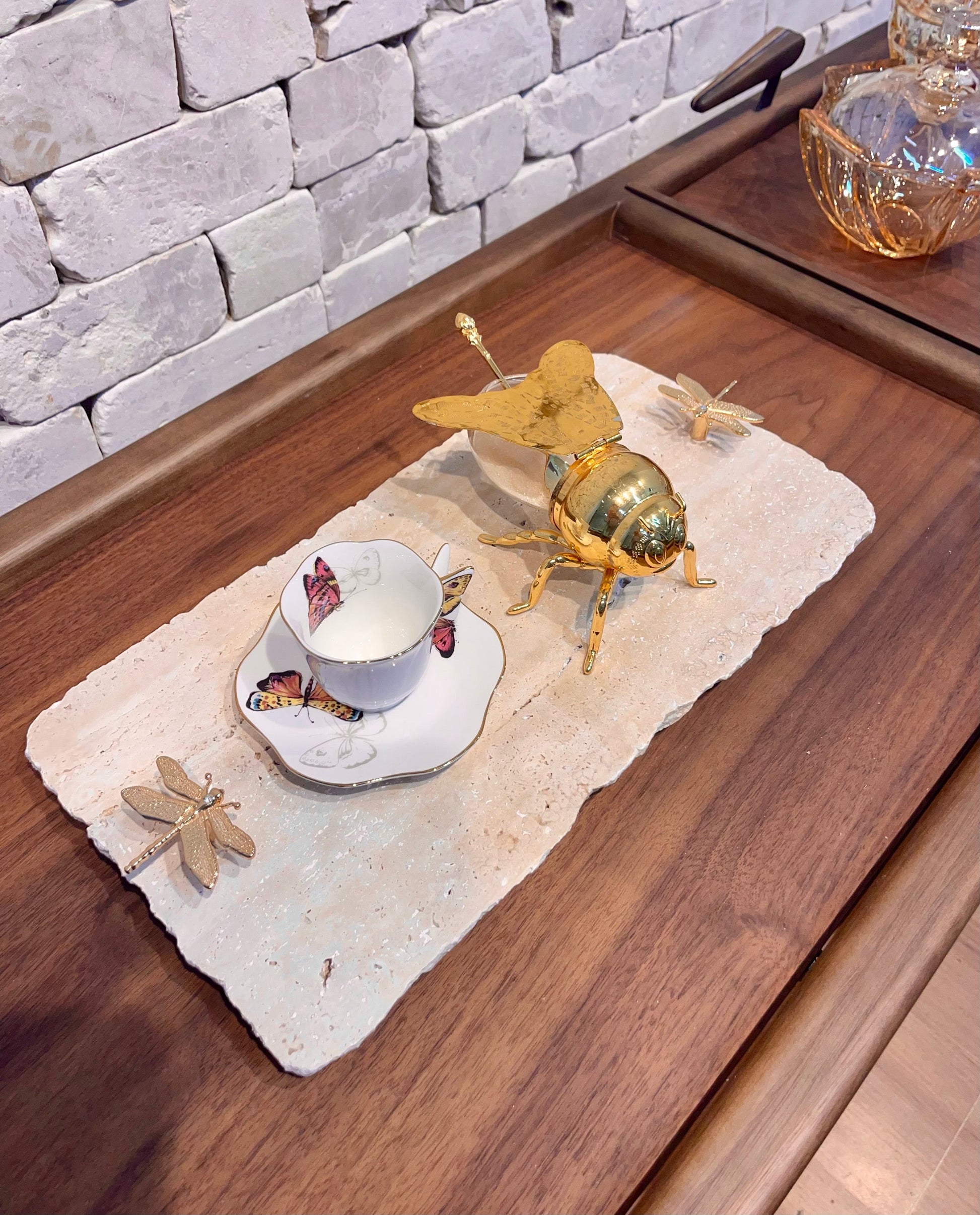 Bandeja - Mármore Travertino Romano - Pegador Libélula