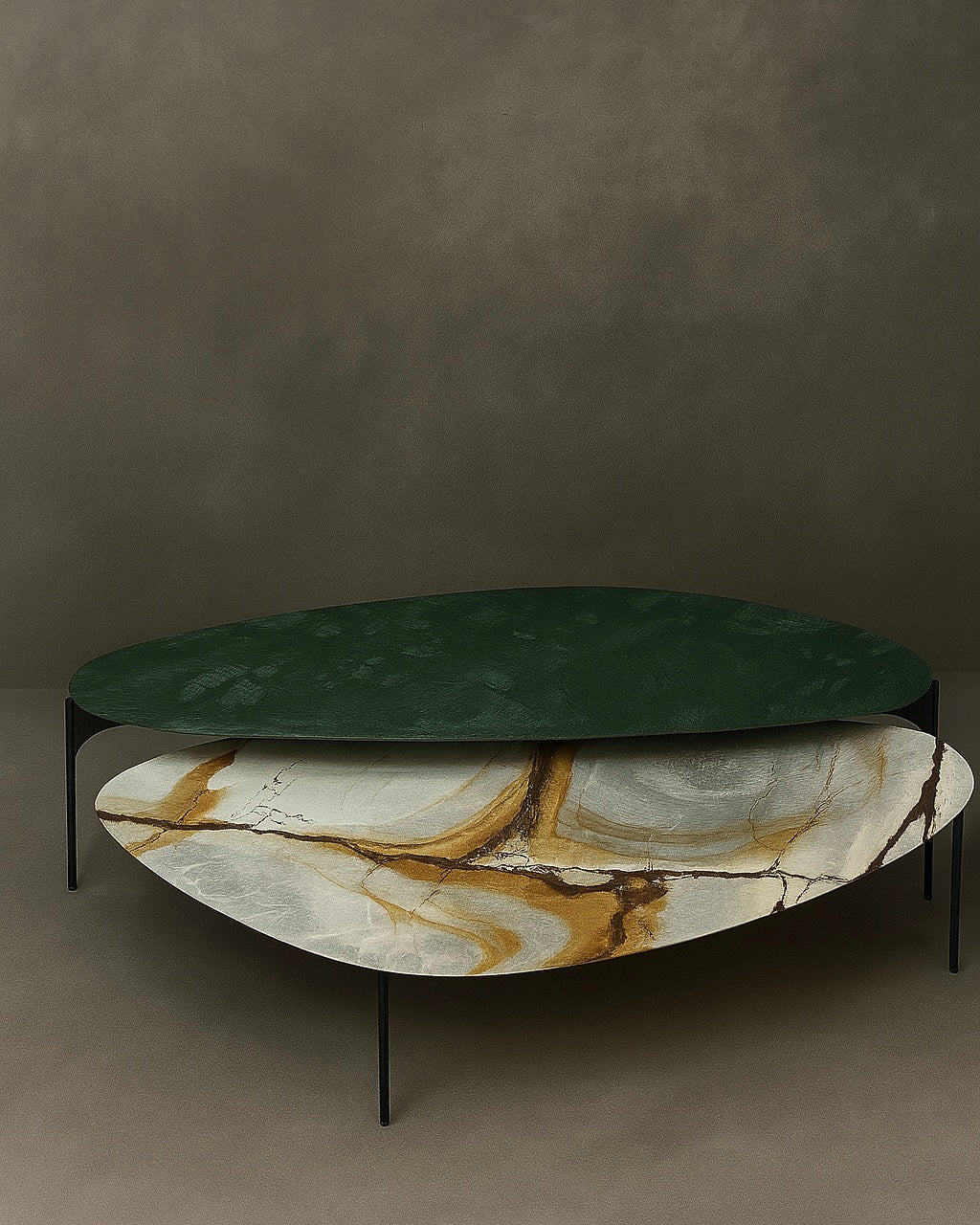 Dupla Mesas de Centro Versatille - Mármore Verde Guatemala e Mármore Blue Deep / Acompanha as 2 mesas