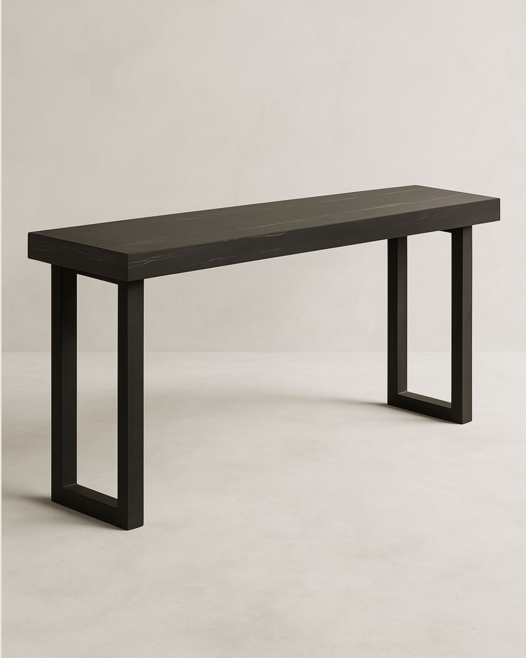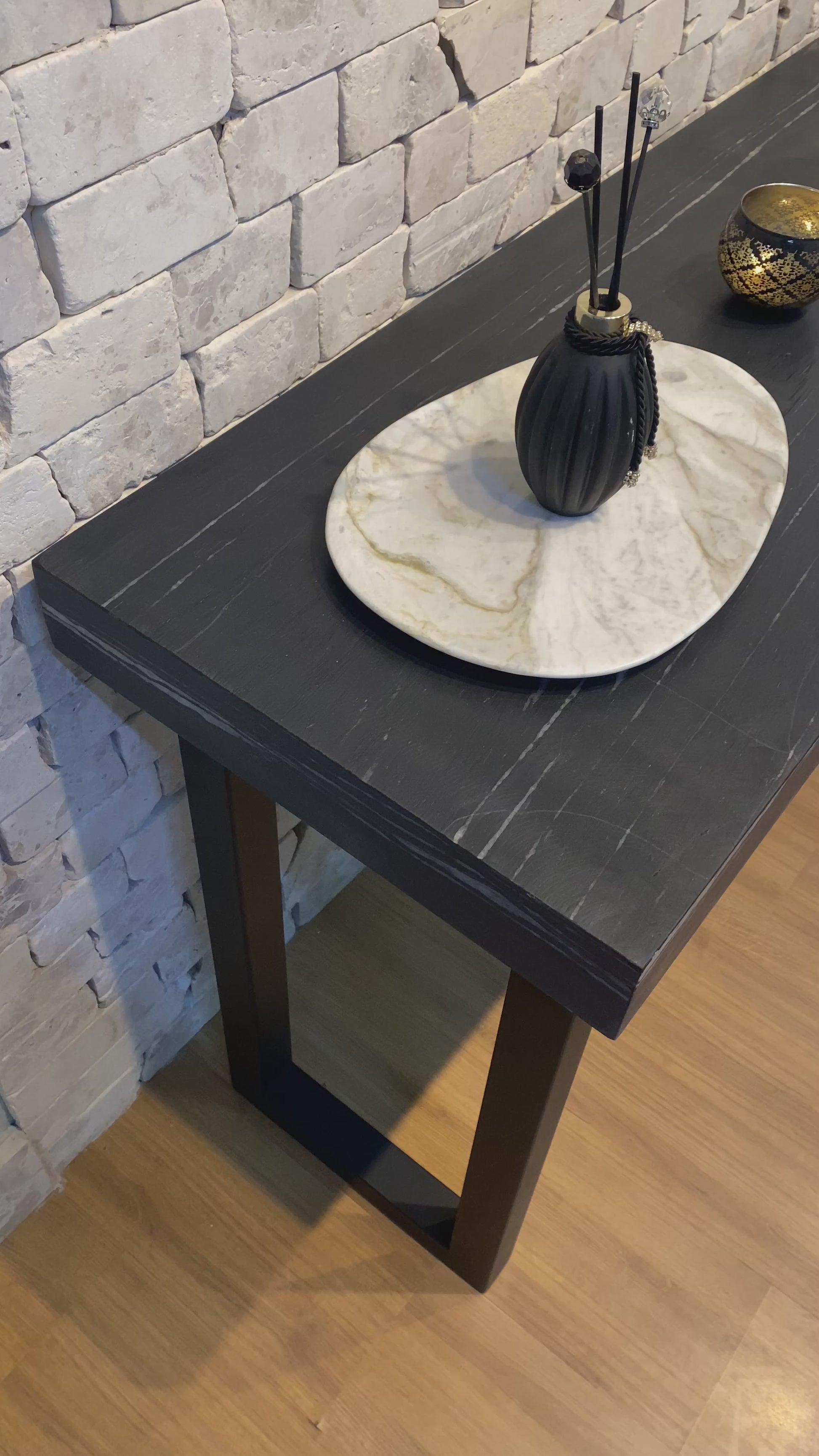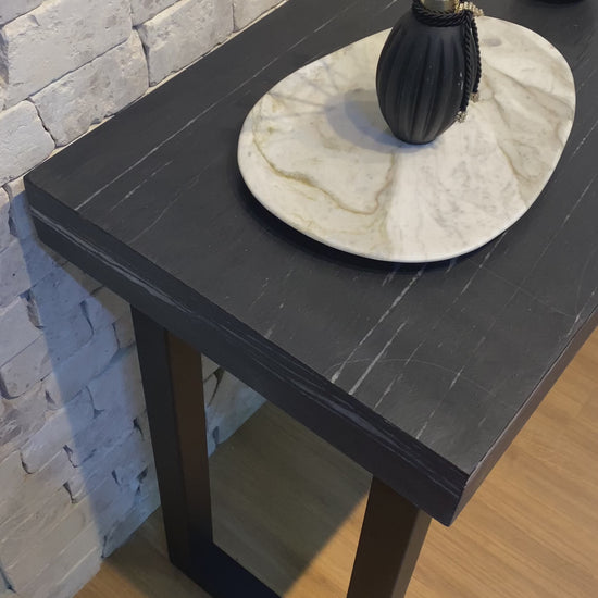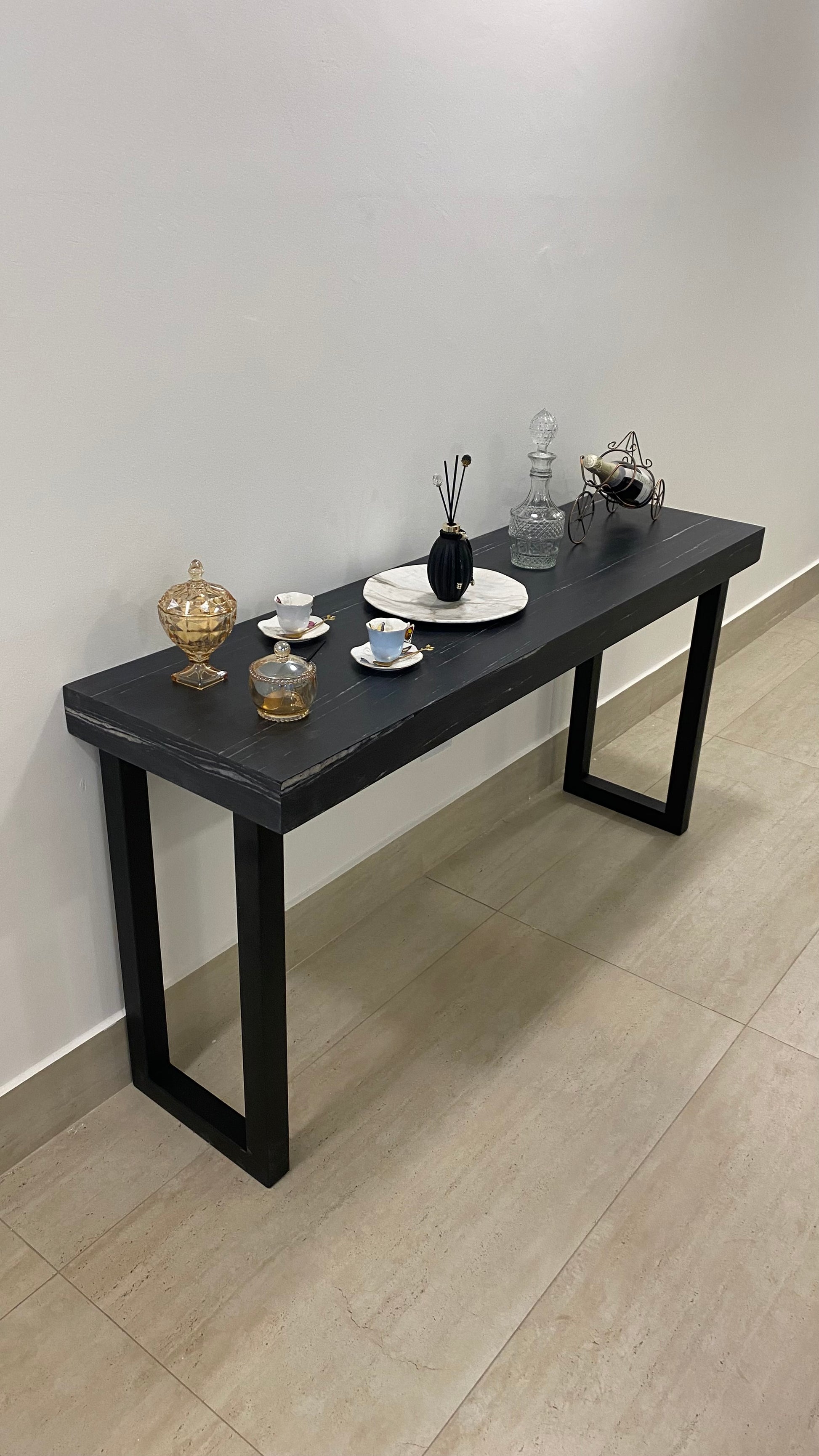 Aparador - Mármore Nero Striatto (Levigado)- Base cor Preta - Aço Inoxidável