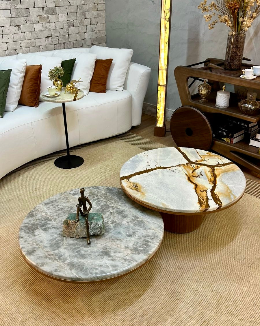 O Casal Malbec é uma celebração do design contemporâneo inspirado pela natureza. Com formas curvas e suaves, essas duas mesas criam uma composição harmoniosa e cheia de personalidade. Feitas para transformar ambientes, elas trazem um toque de frescor e sofisticação para sua casa.