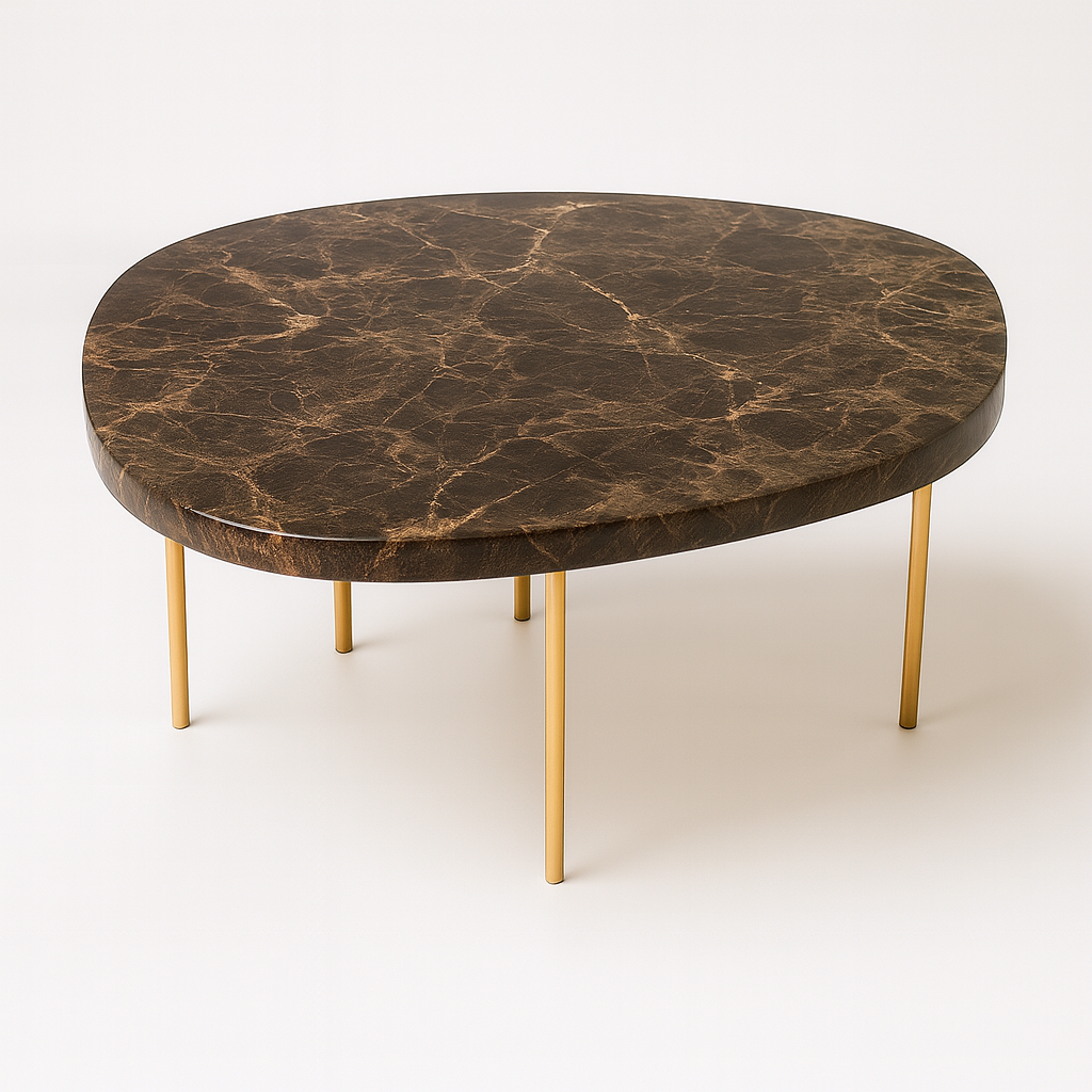 Mesa de Centro - Concha Mármore Marrom Imperador Textura do Tampo Polido ( Com Brilho ) - Base Pinos