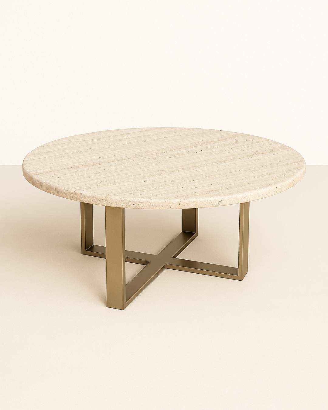 Mesa de Centro - Malbec Dallas Mármore Travertino Romano - Base em Aço Carbono cor Champanhe