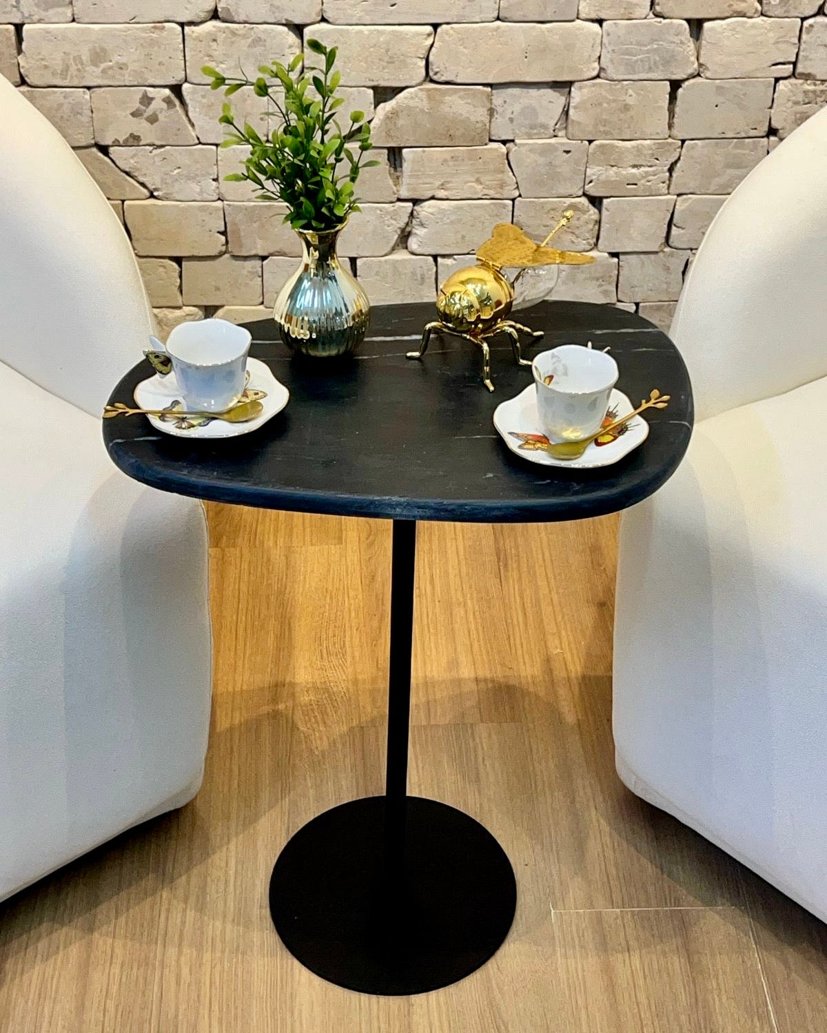 Mesa - Lateral Mármore Nero Striatto Borda meio Boleada - Base Preta