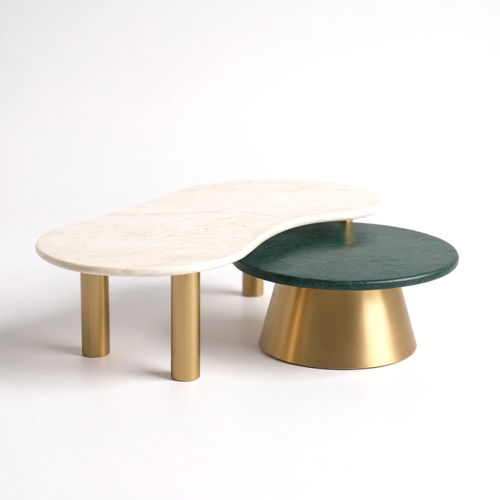 Duo Essenza - Mesa Sonatta Mármore Calacatta- Mesa Malbec Quartzito Verde Esmeralda ACOMPANHA AS DUAS MESAS