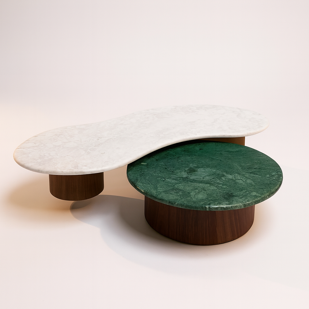 Duo Essenza - Mesa Sonatta Mármore Calacatta- Mesa Malbec Quartzito Verde Esmeralda ACOMPANHA AS DUAS MESAS