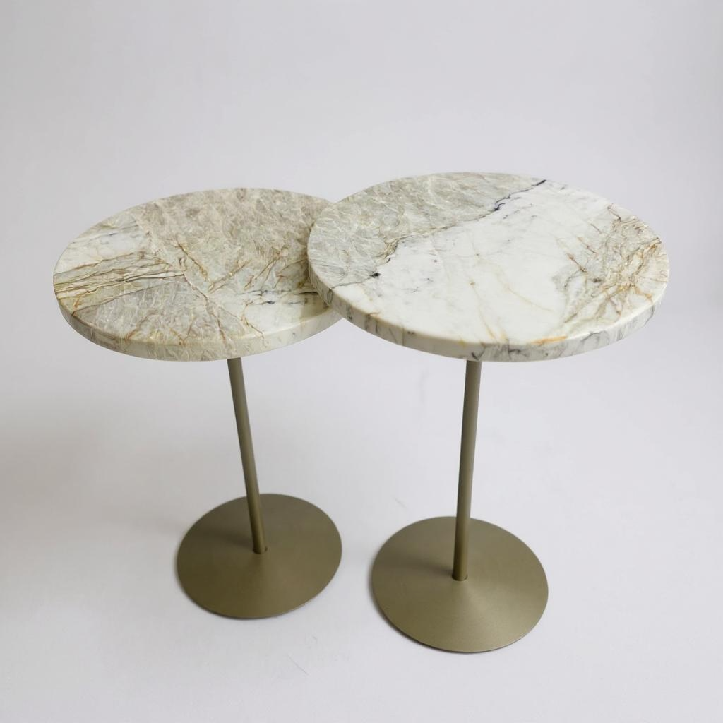 Dupla 2 Mesas Laterais - Mármore Macallan - 60 e 55 Cm de Altura