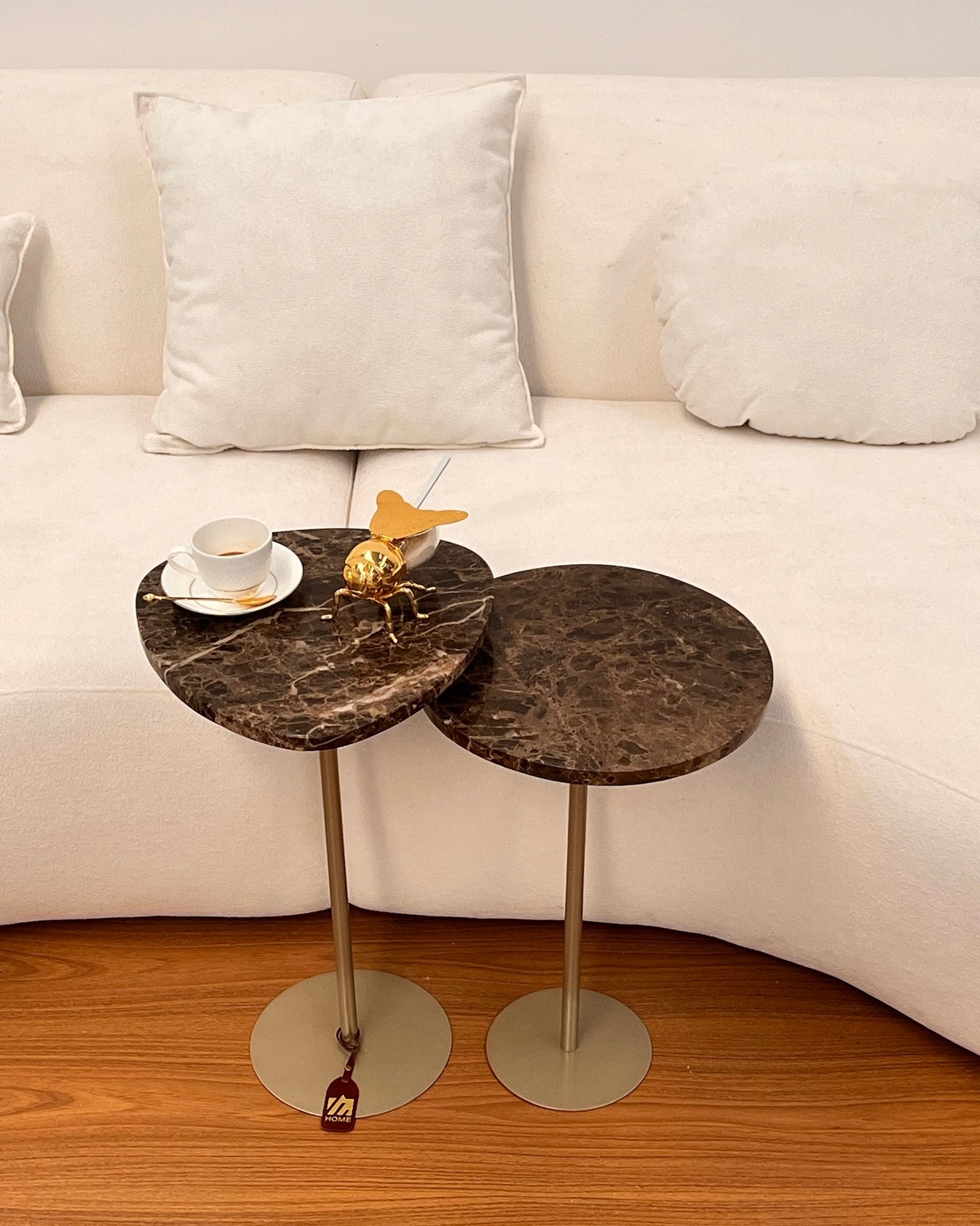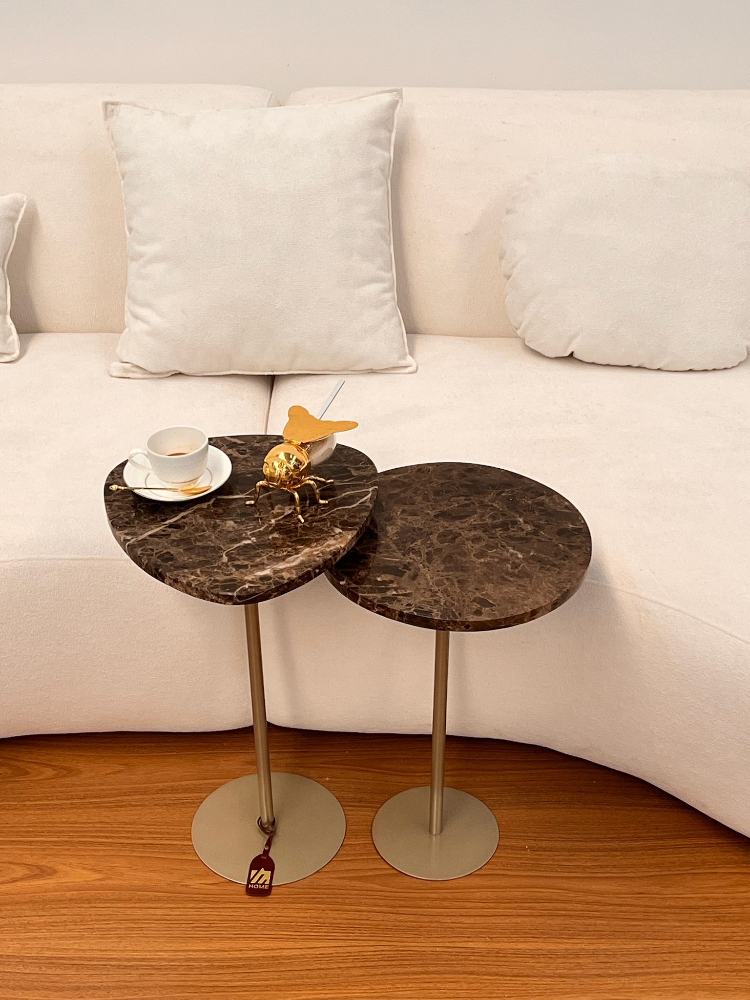 Dupla - Mármore Marrom Imperador - Base cor Champanhe - 2 Mesas 60 e 55 Cm