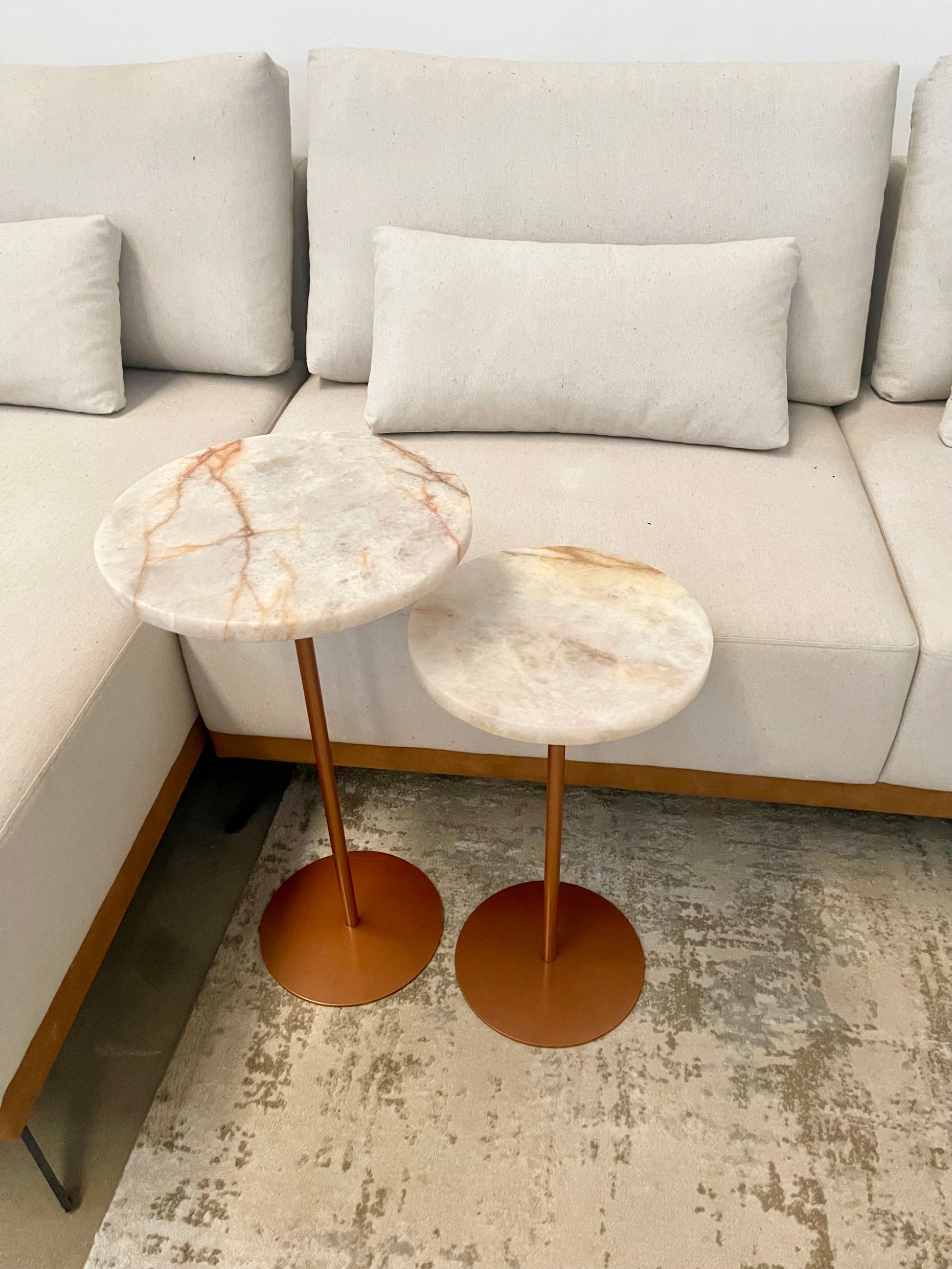 Dupla redonda - Mesa de Apoio - Quartzito Cristallo Rose - 2 Mesas 65 e 60 Cm