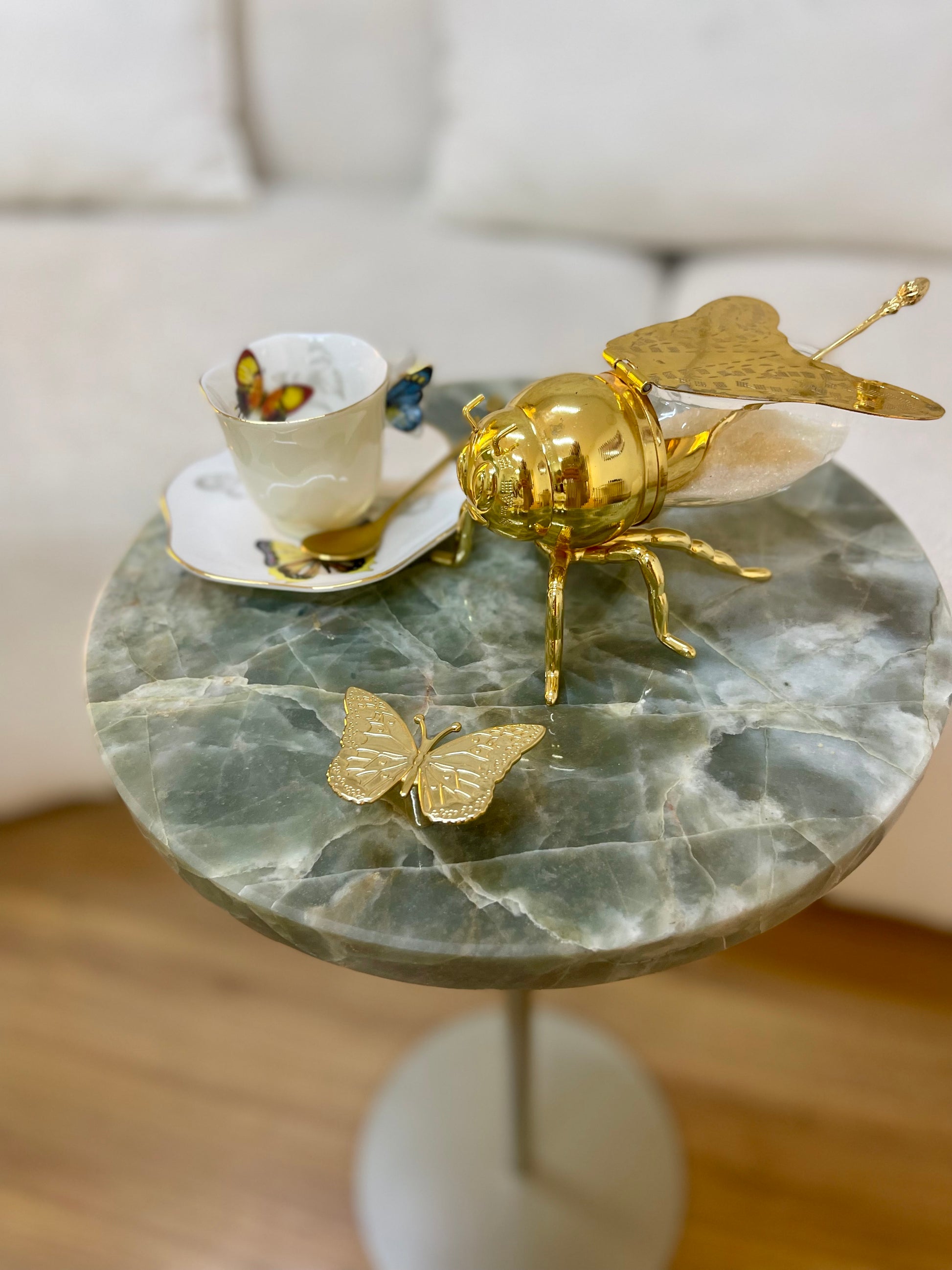 Linha Zera -Quatzito Verde Esmeralda com Borboleta - Base Champanhe