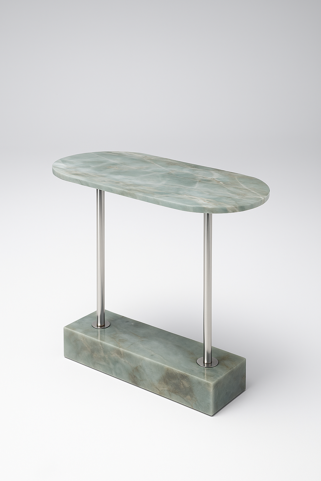 Mesa Aparador - Quartzito Verde Esmeralda / Haste cor Prata