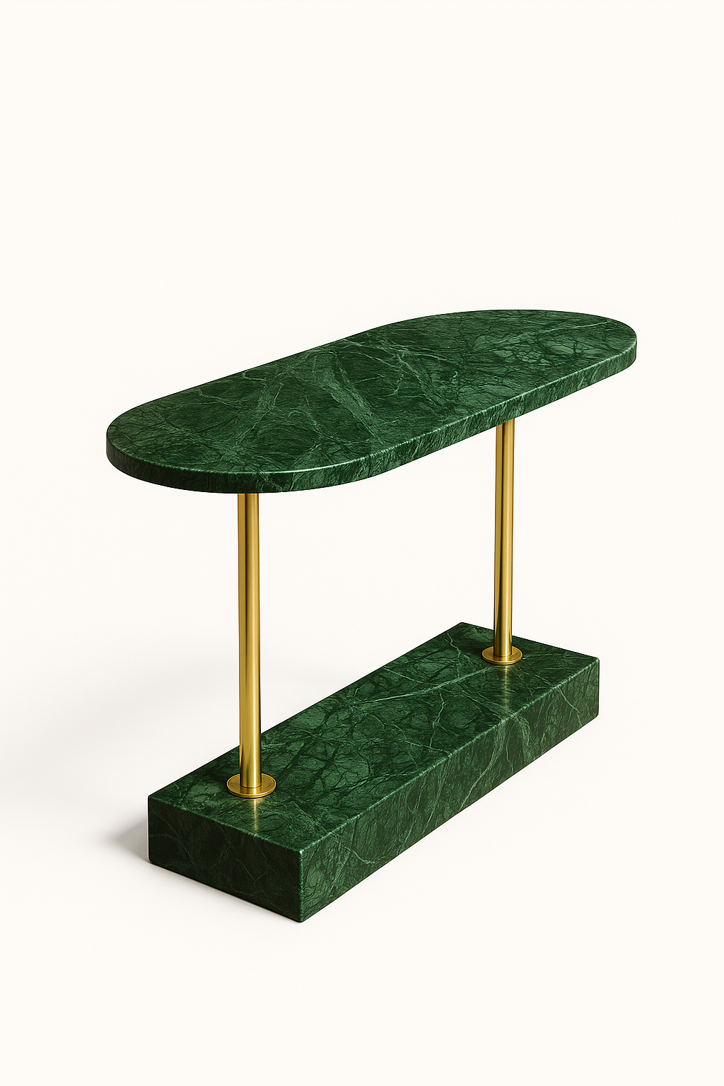 Mesa Aparador - Mármore Verde Guatemala / Haste cor Dourada