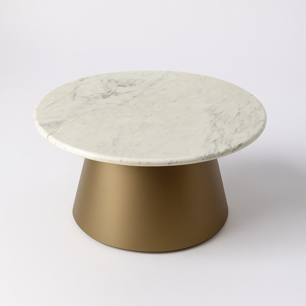 Mesa de Centro - Malbec Dallas Mármore Calacatta / Base Cone Metalizada