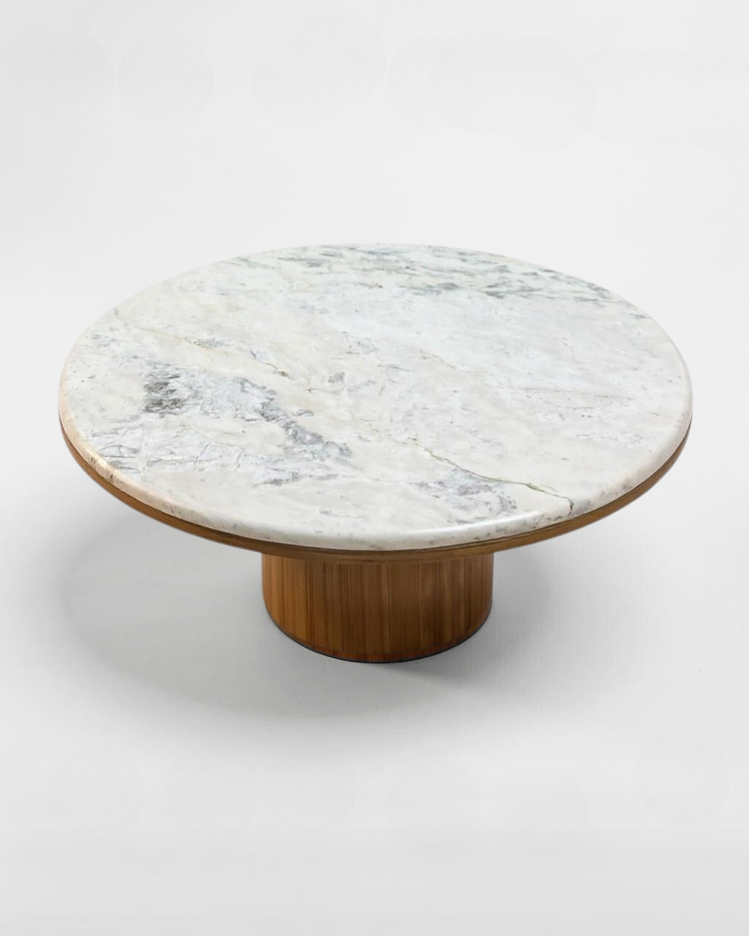 Mesa de Centro - Malbec Dallas Mármore Calacatta / Base Cilindro Grande com Borda - Madeira Freijó
