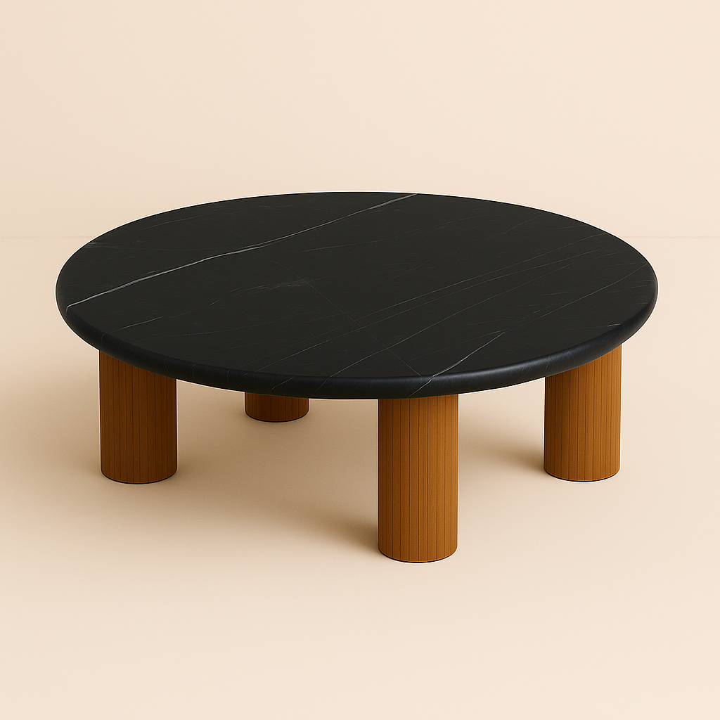 Mesa de Centro - Malbec Dallas Mármore Nero Striatto- Textura do Tampo Textura Levigado sem Brilho / Base Cilindro Pequena
