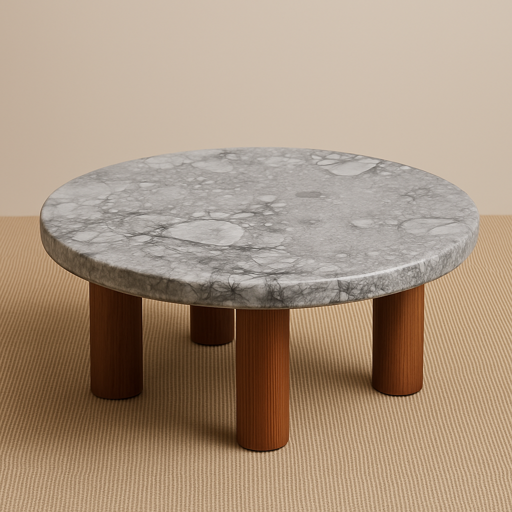 Mesa de Centro - Malbec Dallas - Mármore Rafaello Textura do Tampo Polido ( Com Brilho ) / Base Cilindro Pequena