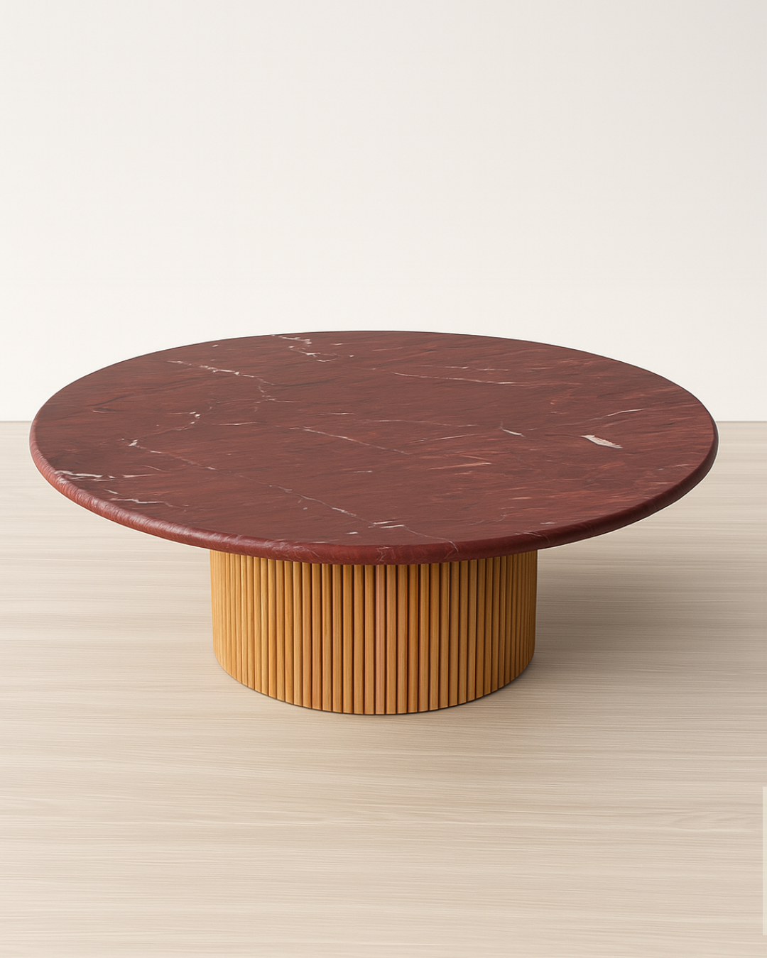 Mesa de Centro - Malbec Dallas - Vermelho Napoleon Bordeaux - Base Cilindro Filetada