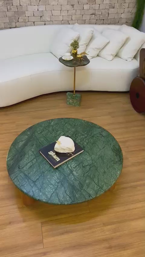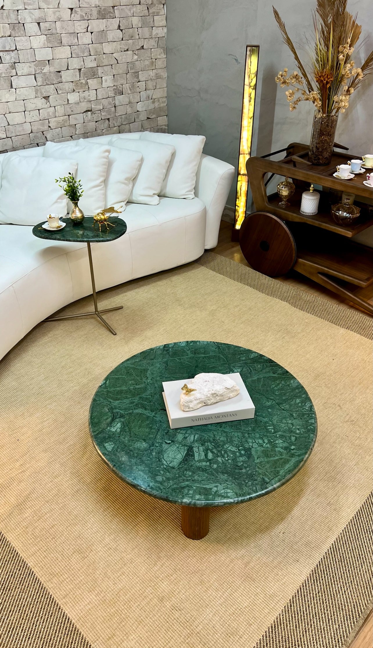 Mesa de Centro - Malbec Mármore Verde Guatemala Textura do Tampo Polida ( Com Brilho ) - Base Cilindrica Pequena