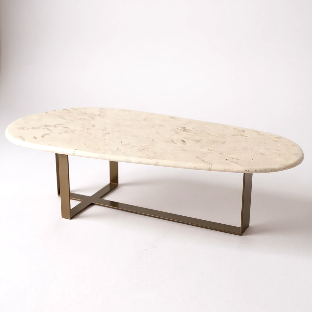 Mesa de Centro Wine Mármore Calacatta - Base Santini - Inox Inoxidável