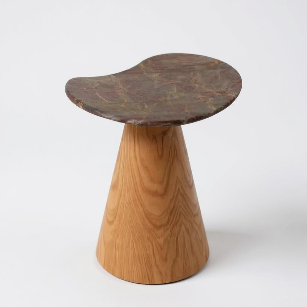 Mesa Eclipse Orgânica - Mármore Verde Alpi - Base Cone / Cor Freijó