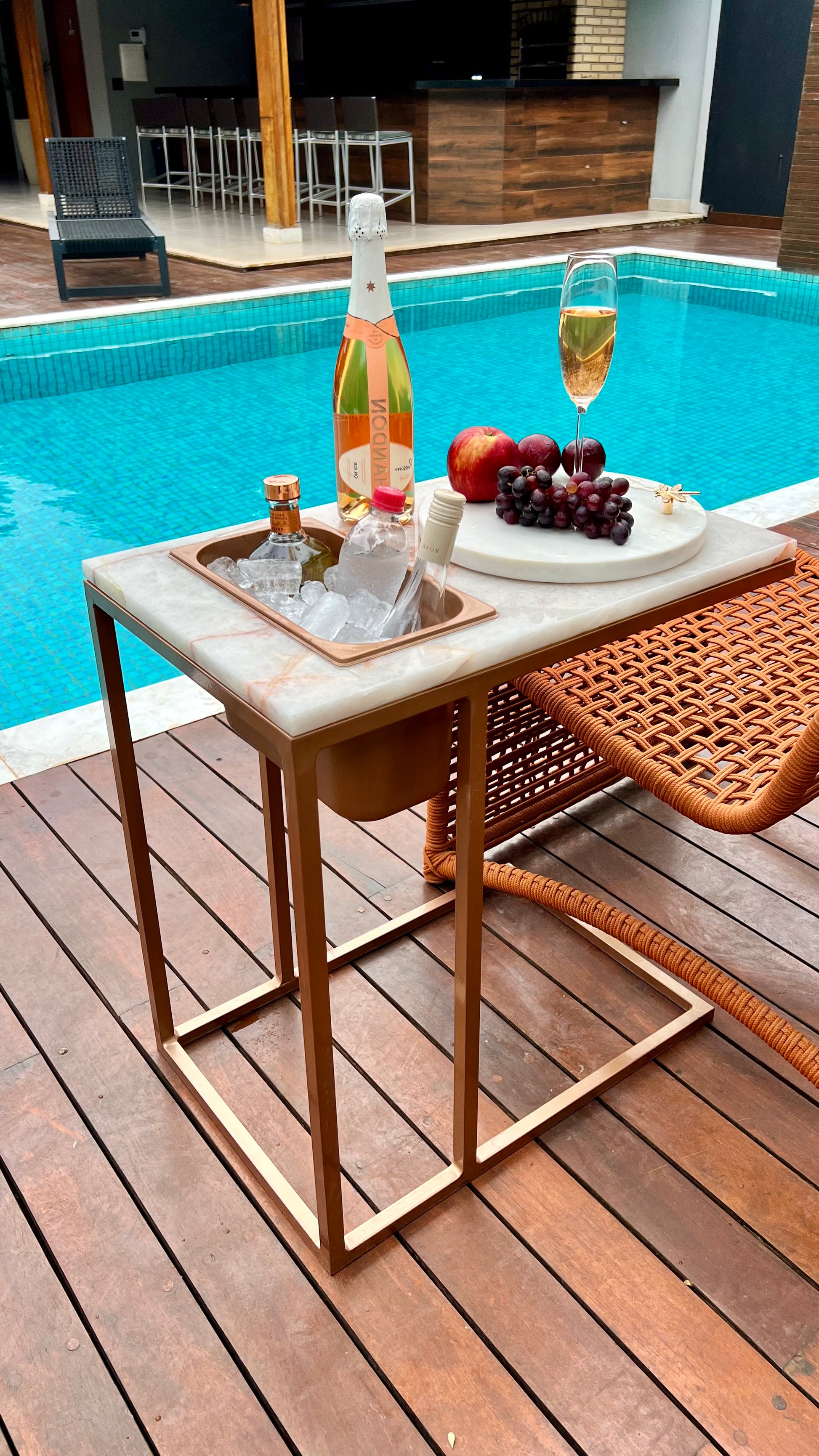 Mesa Gourmet - Quartzito Cristallo Rosé - Base cor Rose