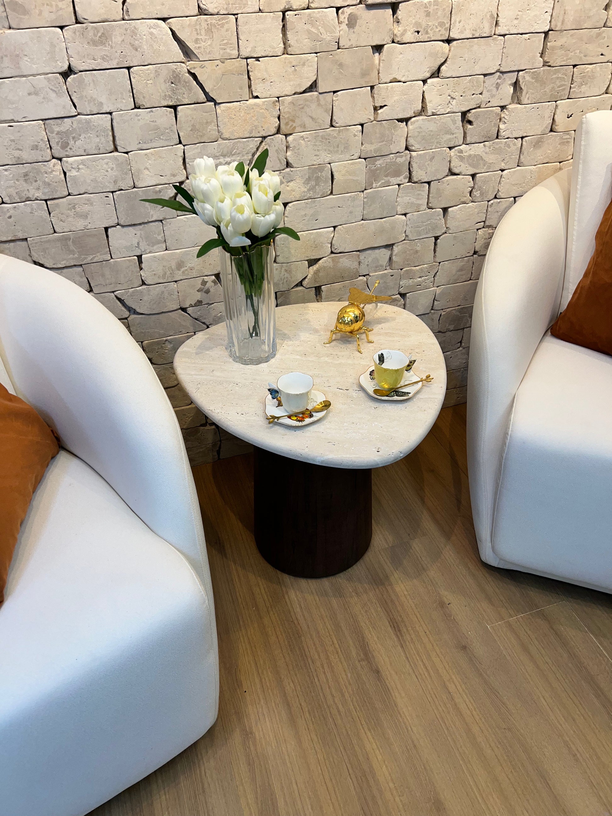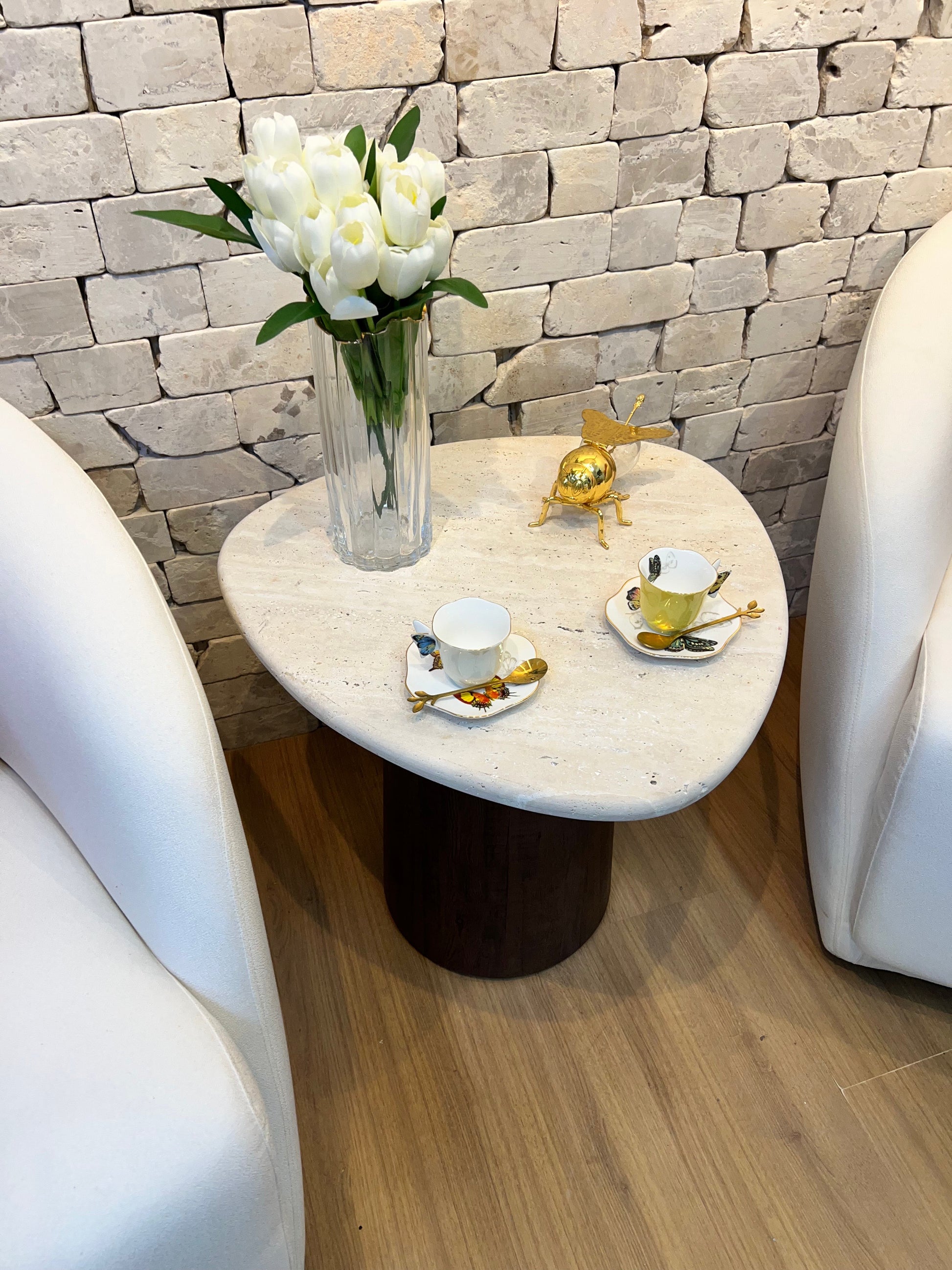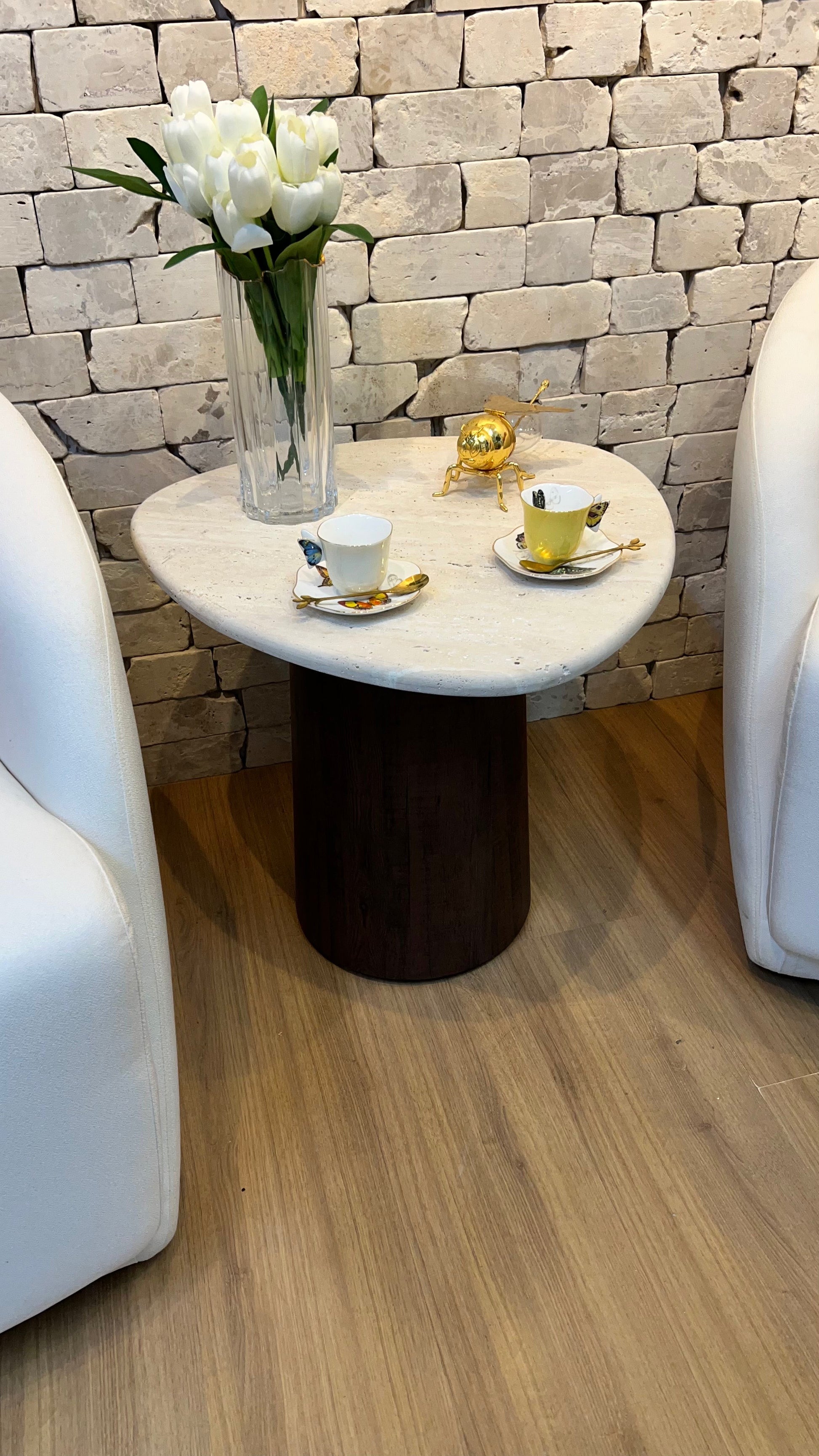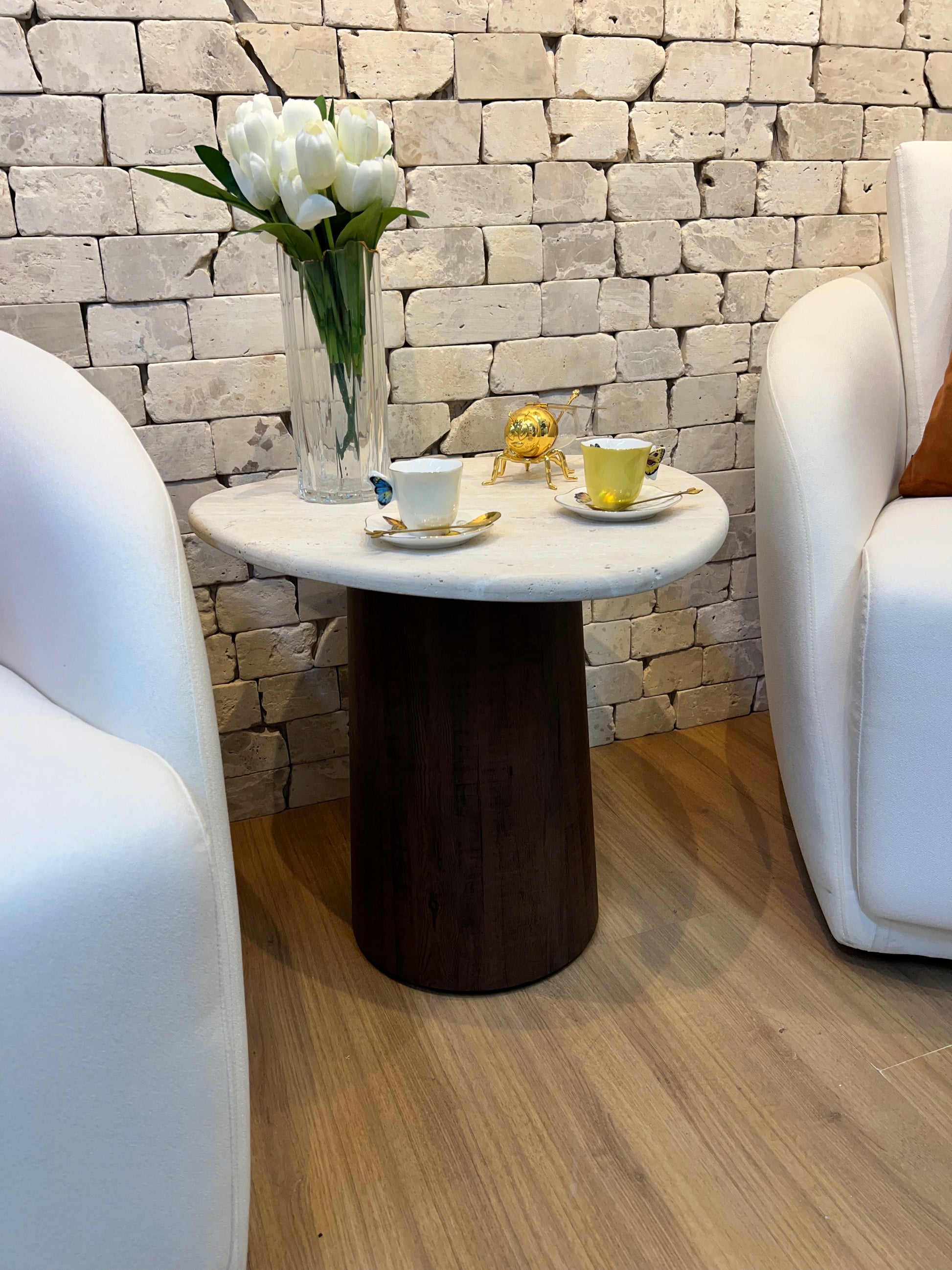 Mesa Gran Sangiovese Mármore Travertino Romano Legítimo - Base Cilindro Robusta