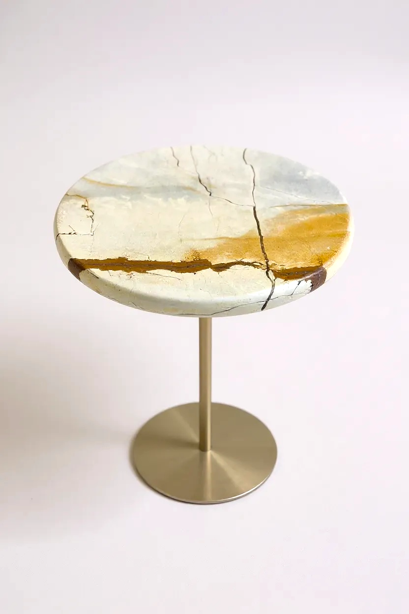 Mesa de Apoio - Blue Deep - Linha Zera - Base cor Champanhe- Acabamento Abaulado