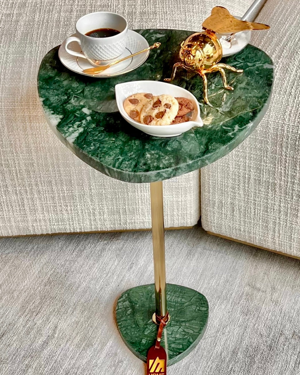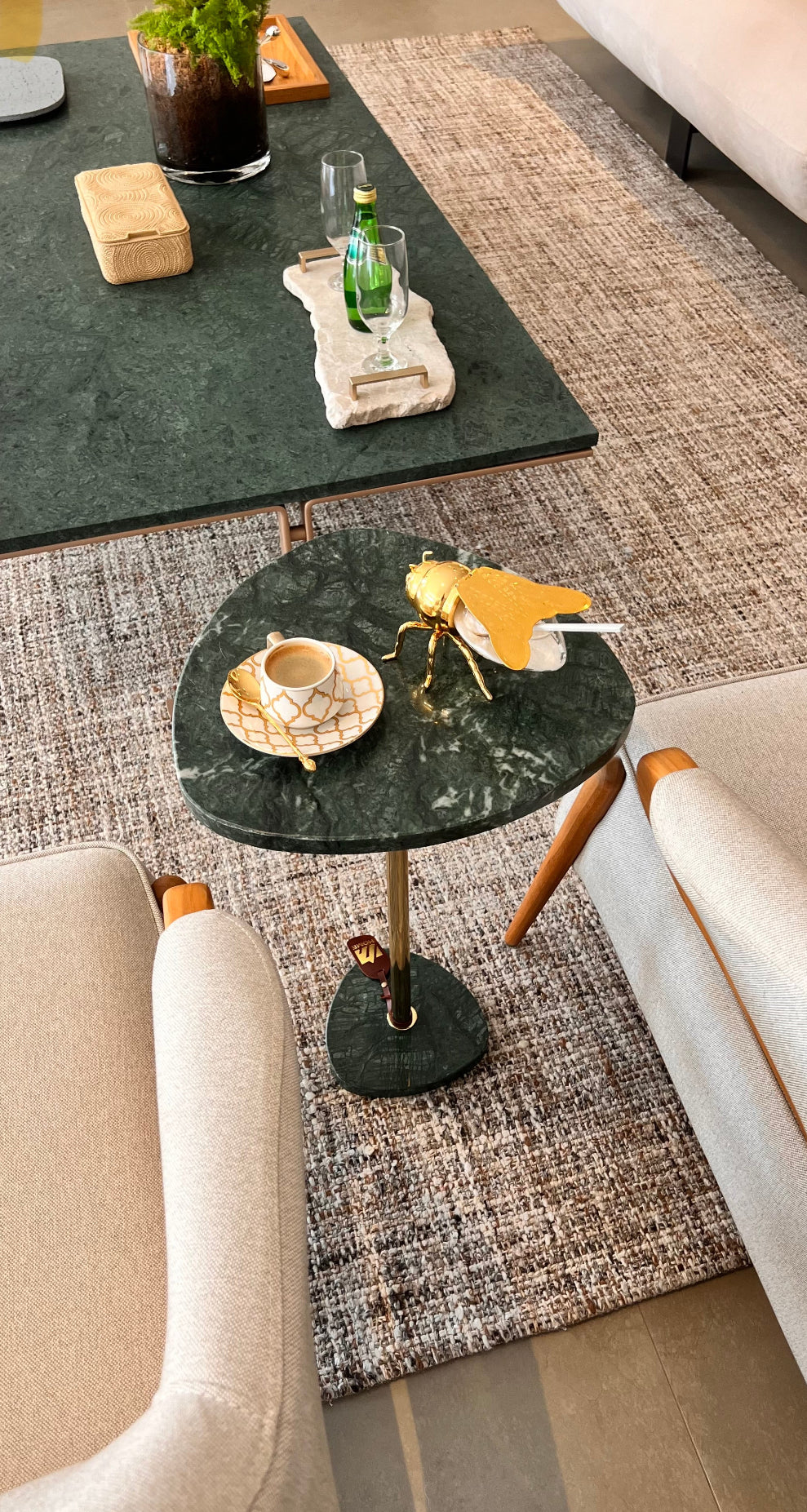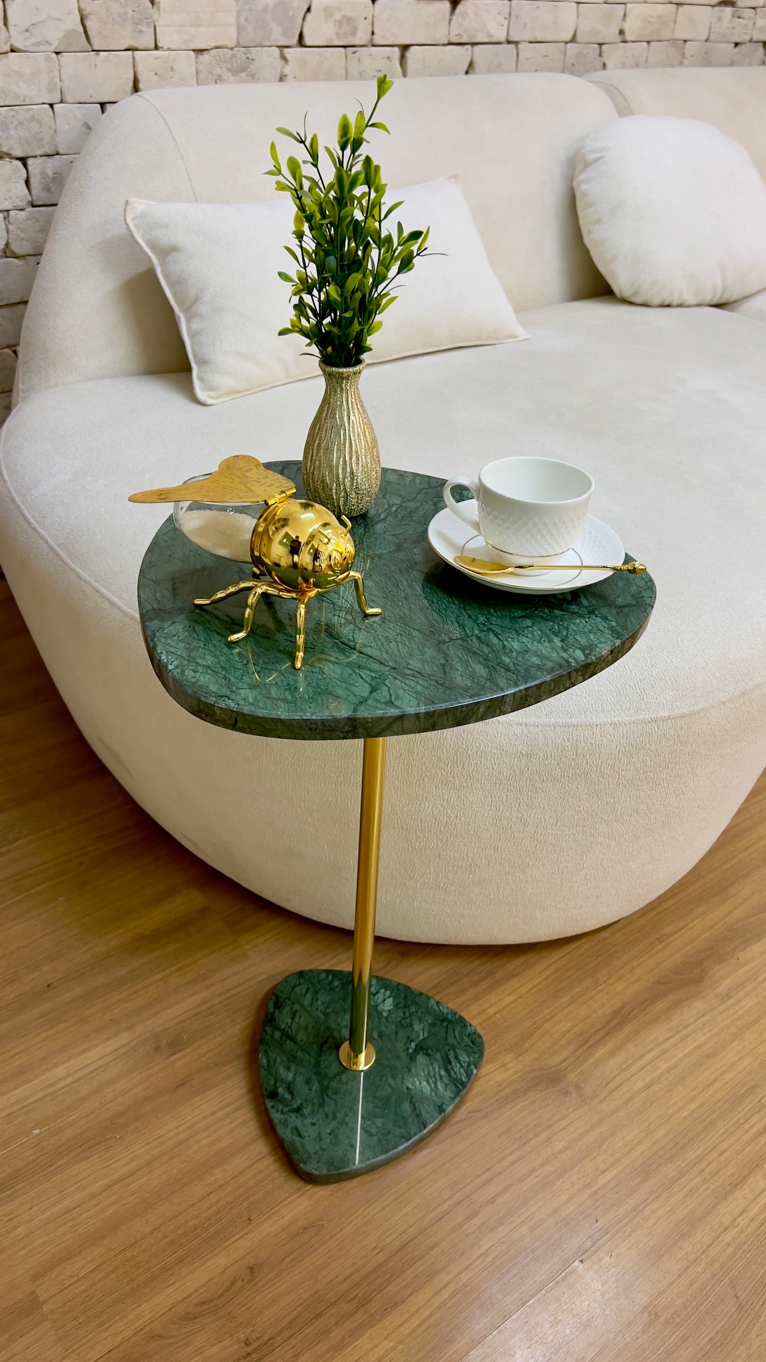 Mesa de Apoio Sangiovese - Mármore Verde Guatemala - Edição Especial / Haste cor Dourada