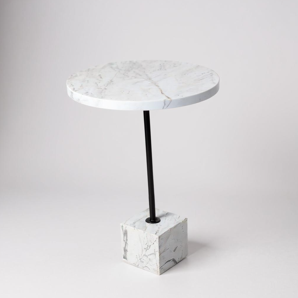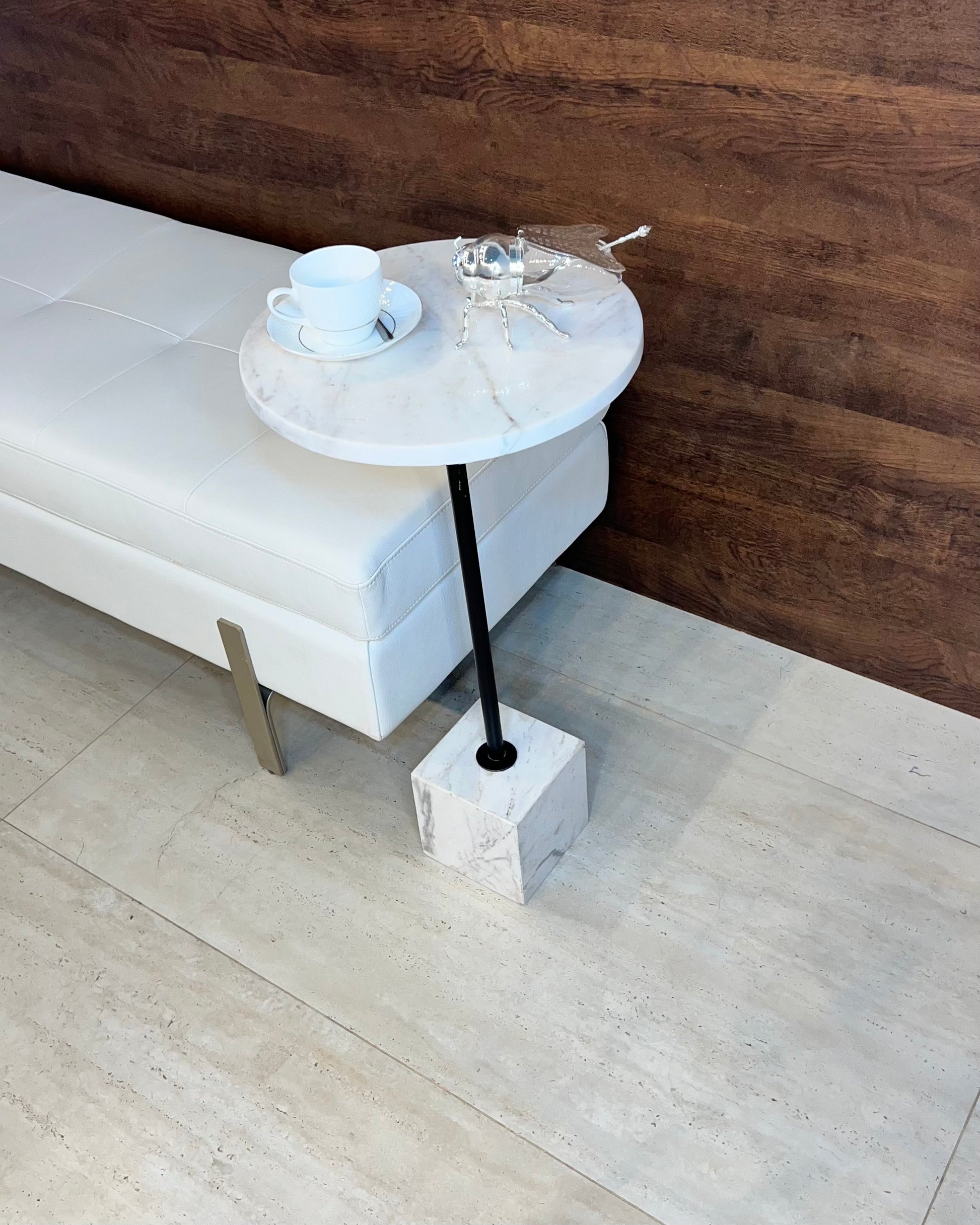 Mesa Apoio - Malbec - Mármore Calacatta - Haste Preta