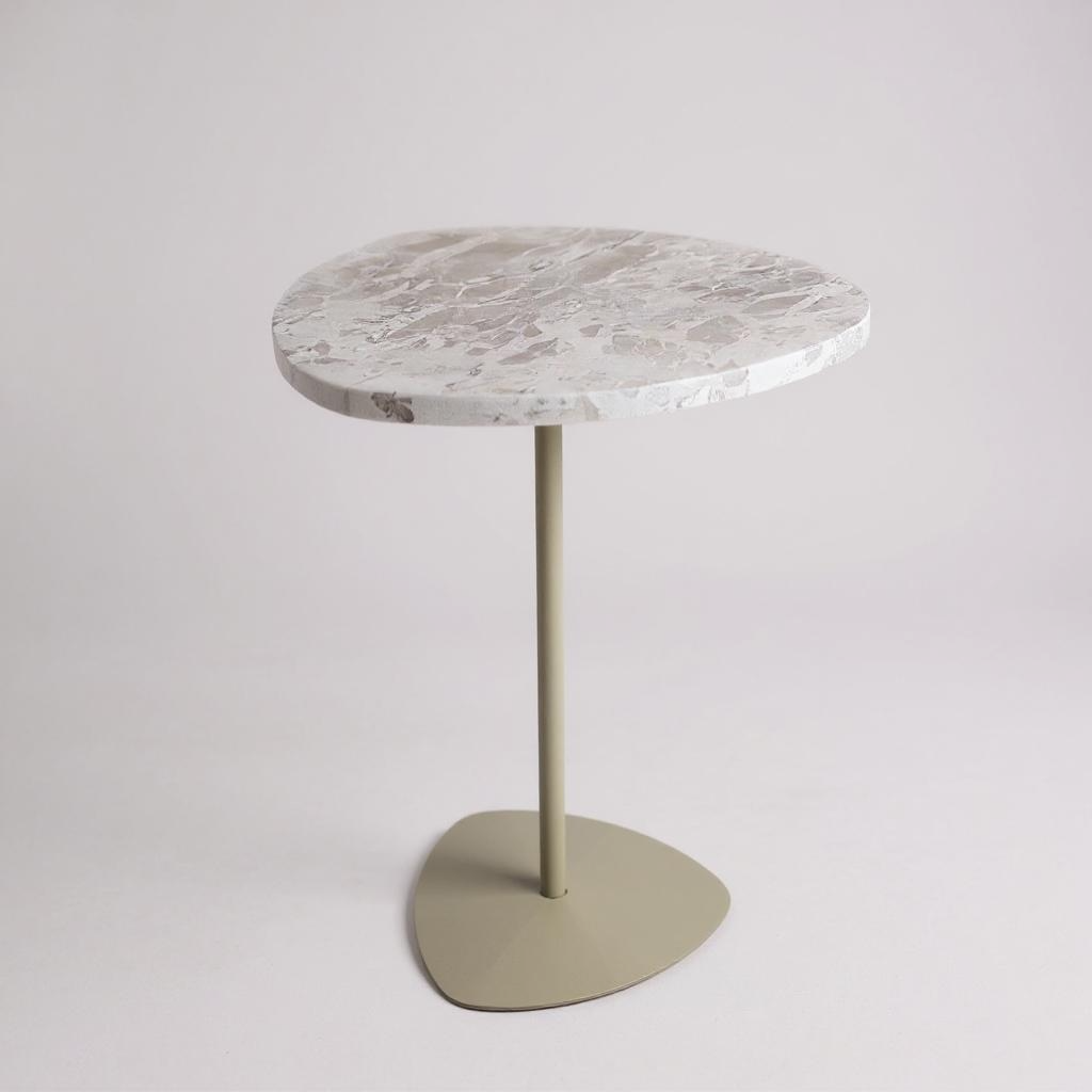 Mesa de Apoio- Sangiovese Edição Especial - Mármore Travertino Nacional / Base em Aço Carbono Cor Bege