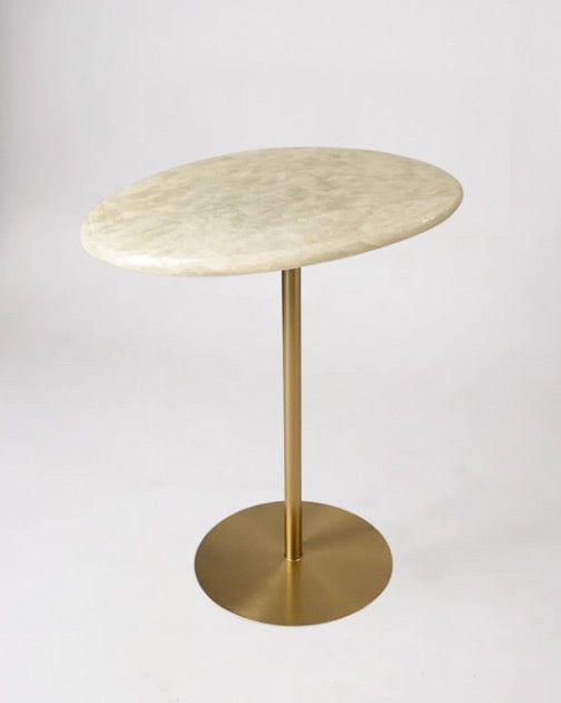 Mesa Lateral - Quartzito Cristallo Gold - Borda meio Boleada - Base cor Dourado