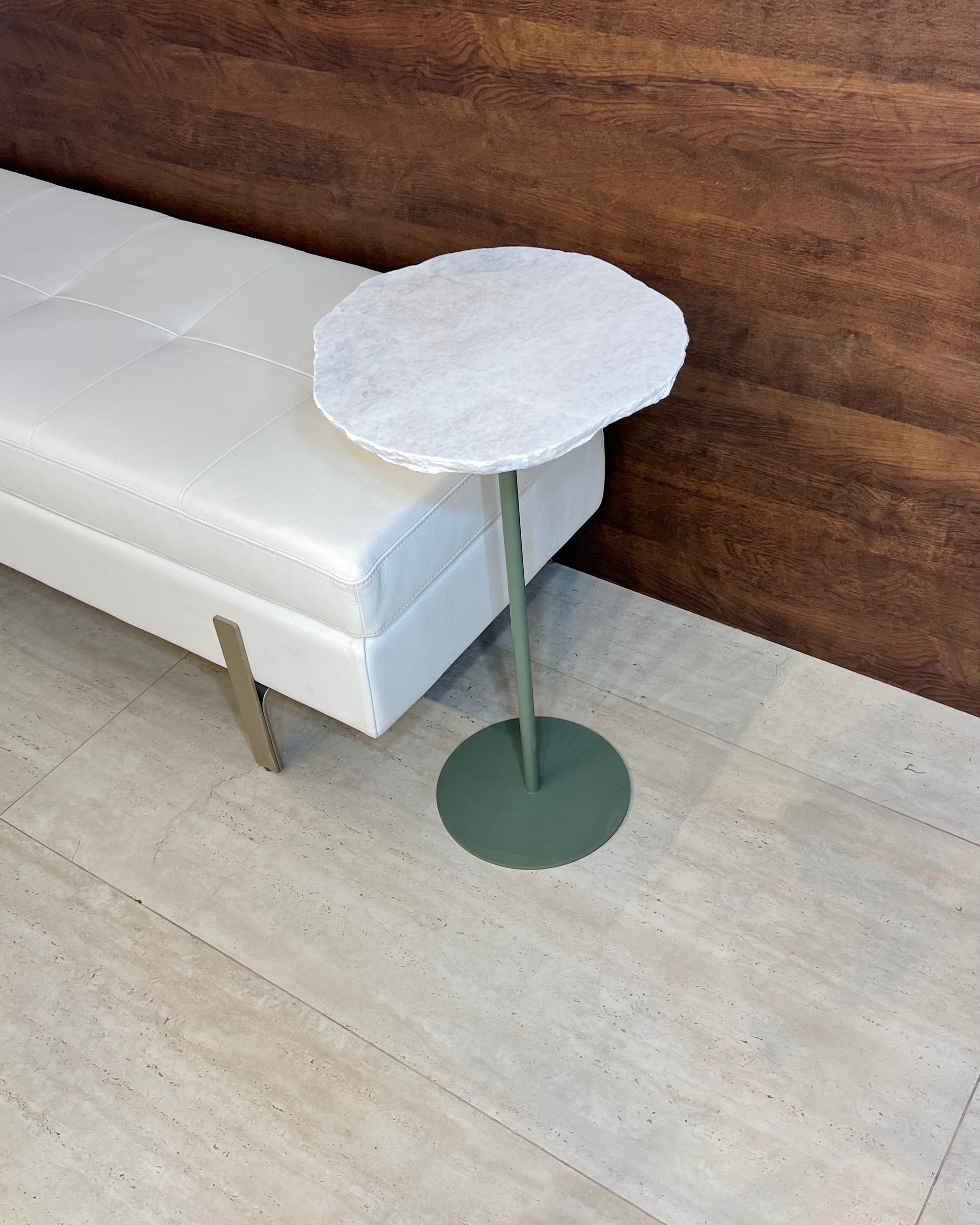 Mesa Lateral - Orgânica Mármore Calacatta - Base cor Verde
