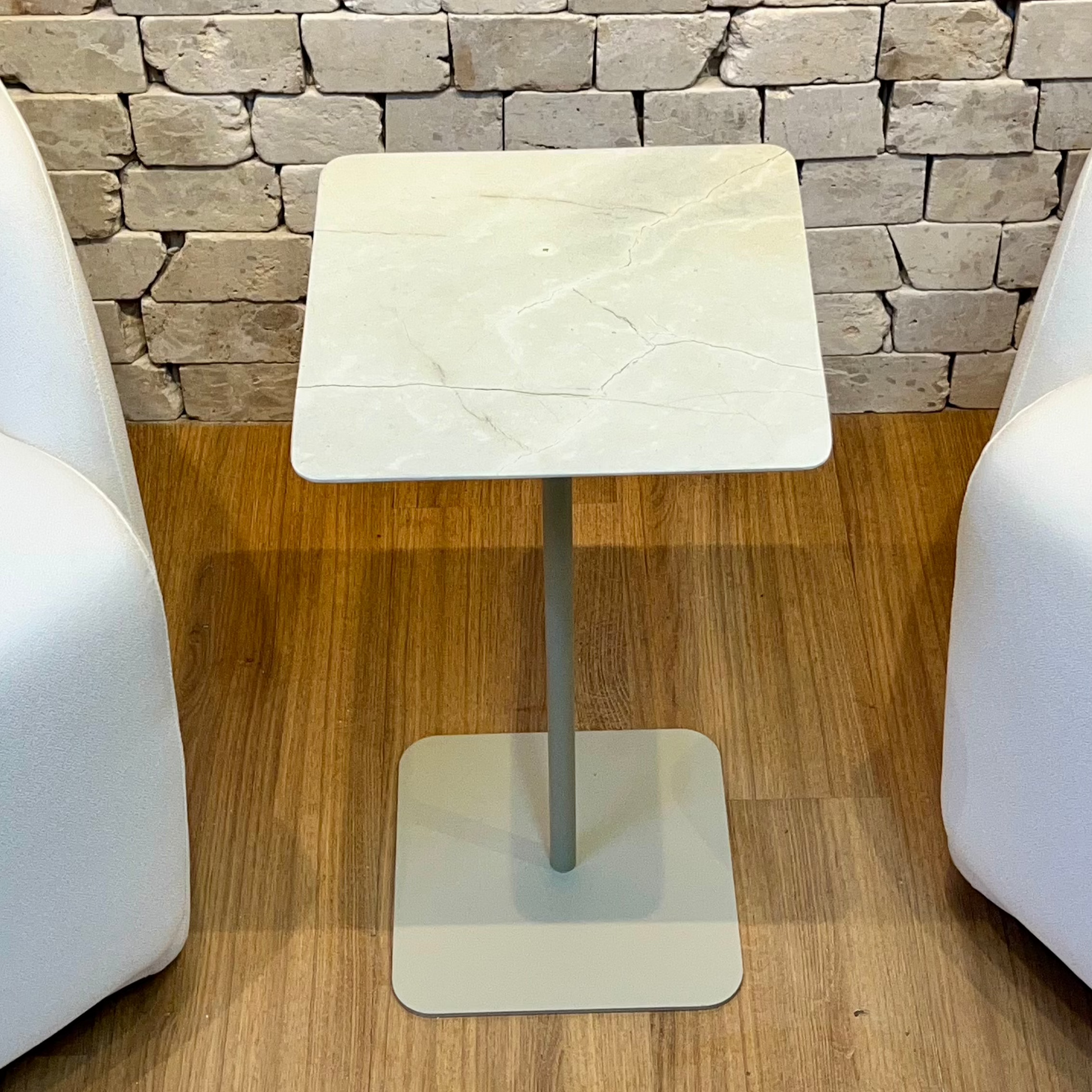 Mesa de Apoio - Quadratto - Mármore Crema Deep - Base cor Bege