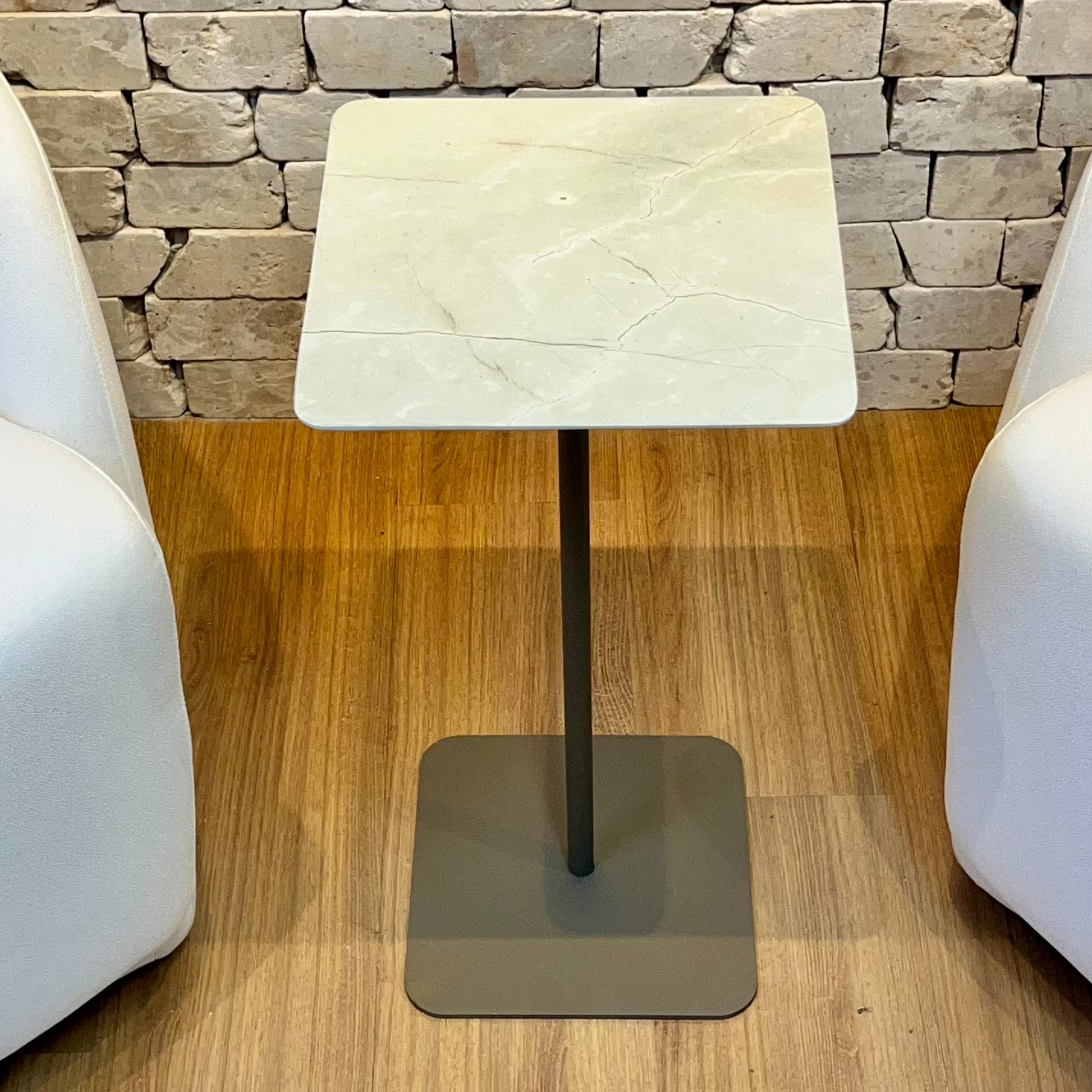 Mesa de Apoio - Quadratto - Mármore Crema Deep - Base cor Fendi