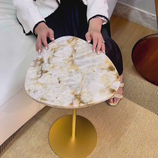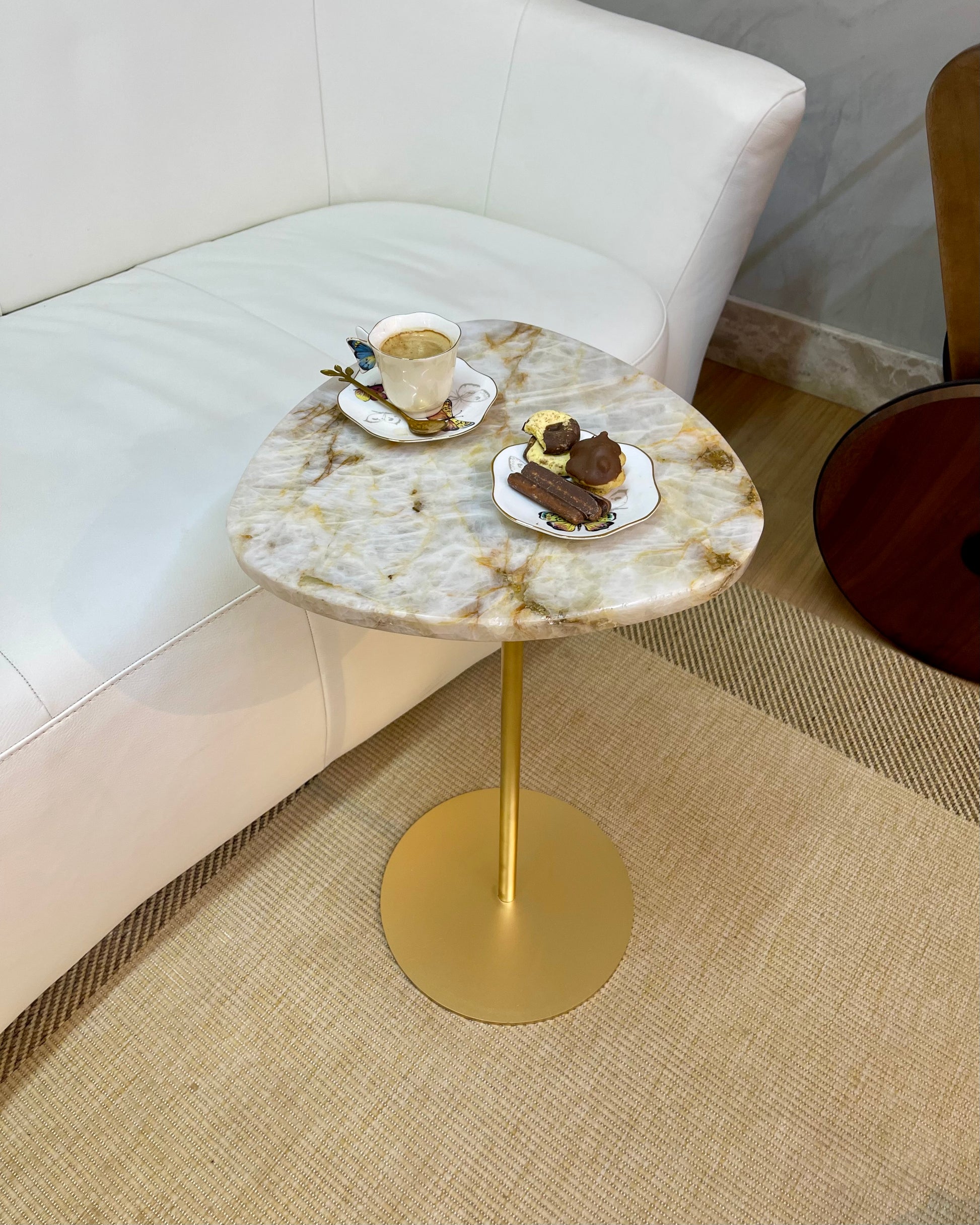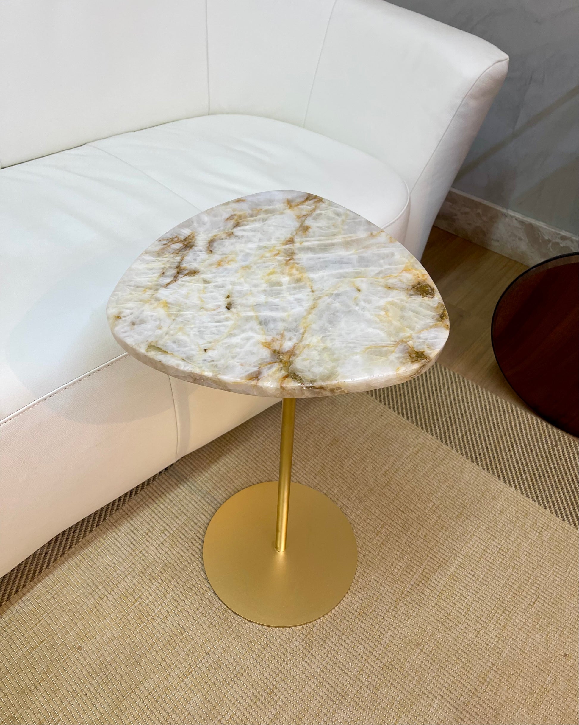 Mesa de Apoio - Quartzito Cristallo Ônix Translúcido - Base cor Ouro
