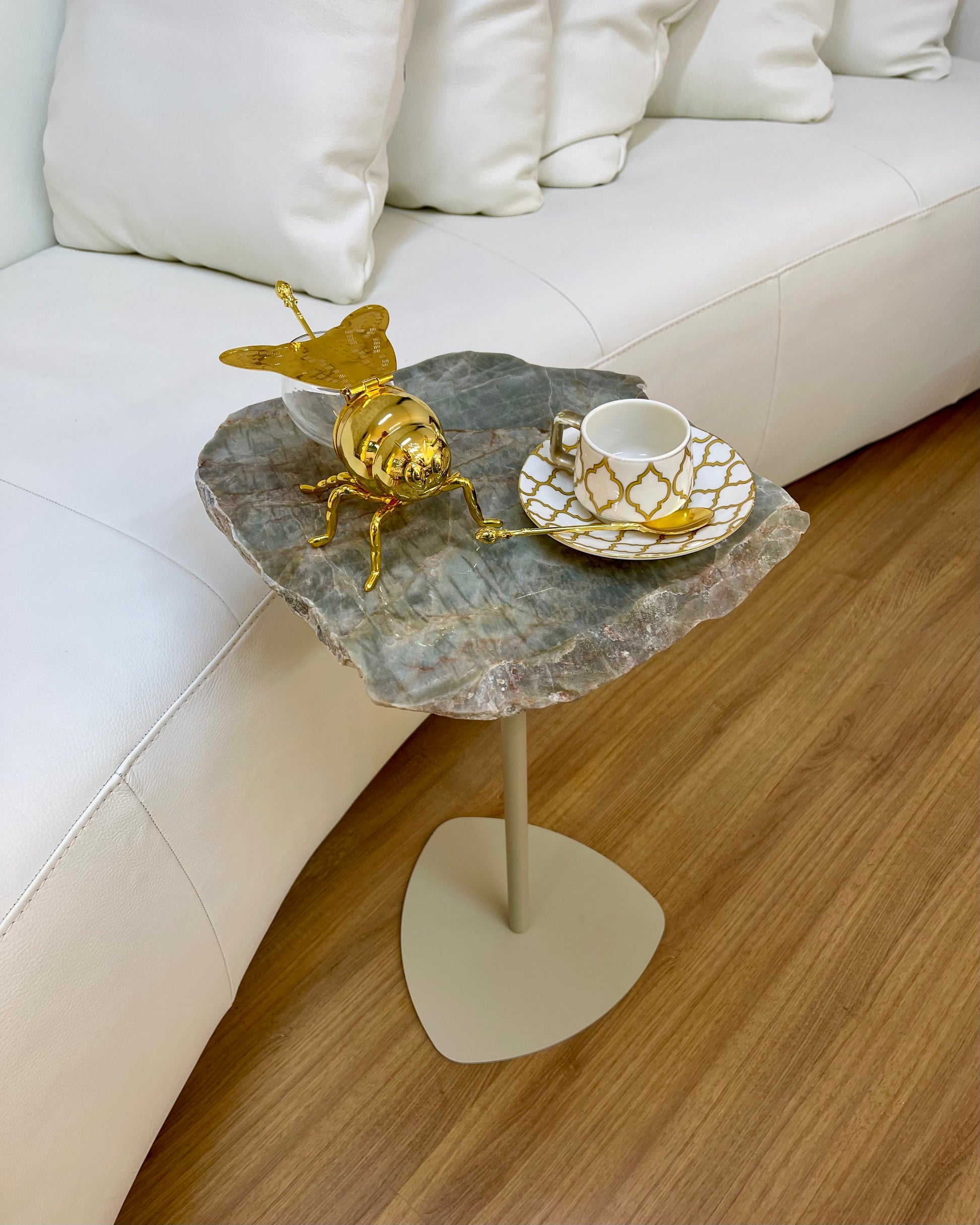 Mesa Pepita Orgânica - Quartzito Verde Esmeralda - Base Sangiovese cor Bege