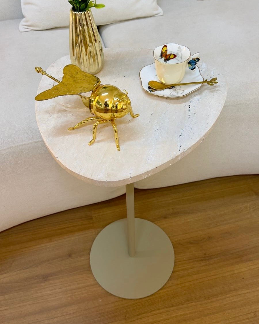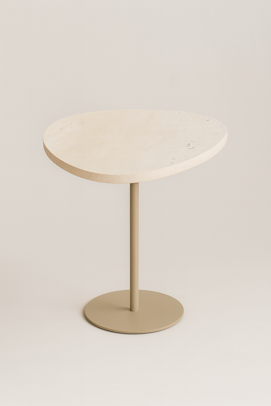 Mesa de Apoio - Linha Essencialle - Mármore Travertino Romano Legítimo - Base cor Bege Redonda