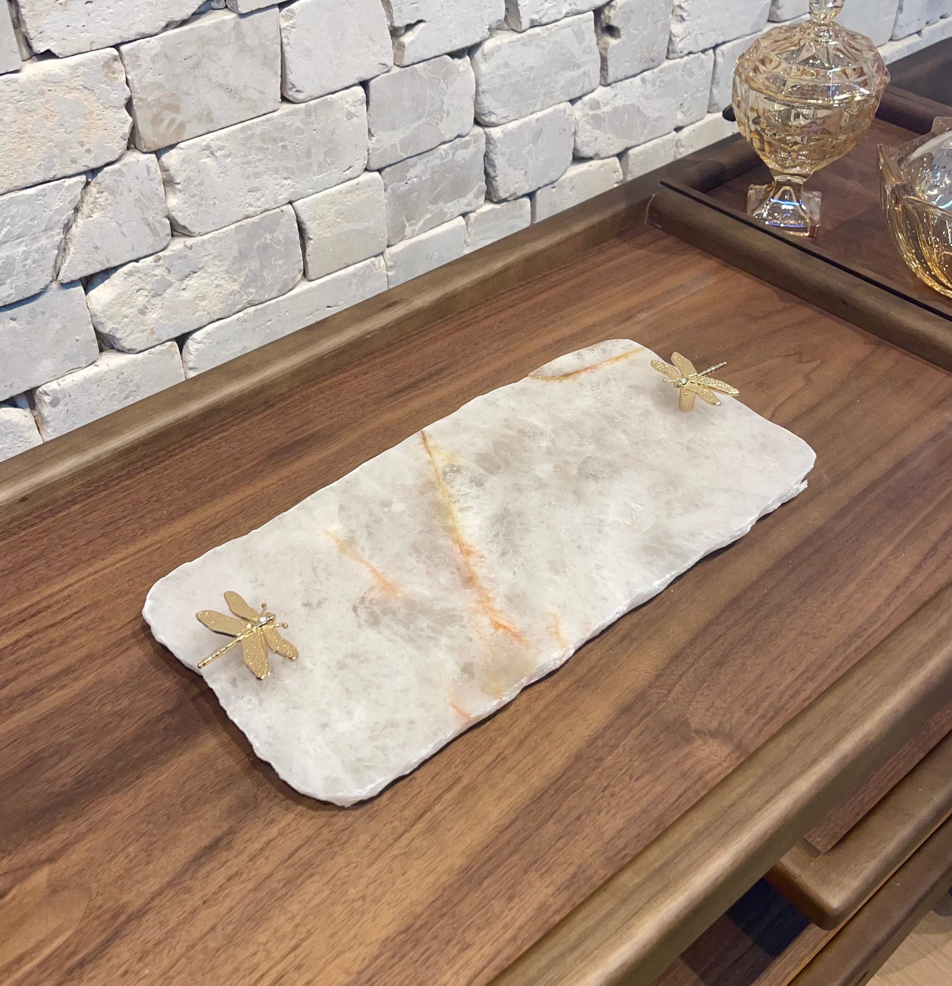 Bandeja- Quartzito Cristallo Rose com Libélulas