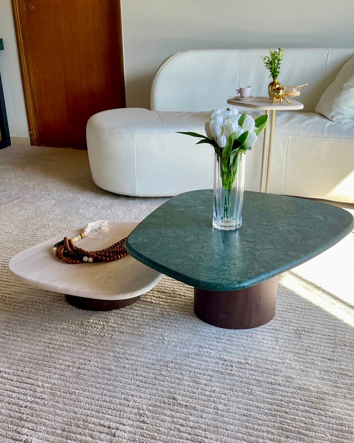 Duo Concha - Mármore Travertino Romano e Verde Guatemala - Base Cilindro Grande