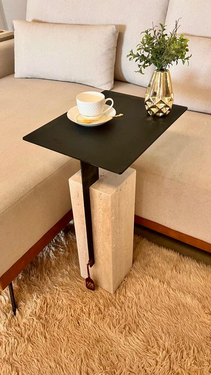 Mesa Lateral - Merlot Preta - Base Mármore Travertino Romano Legítimo